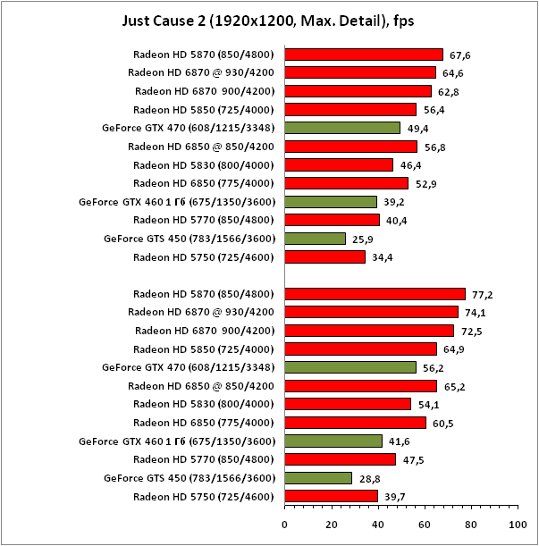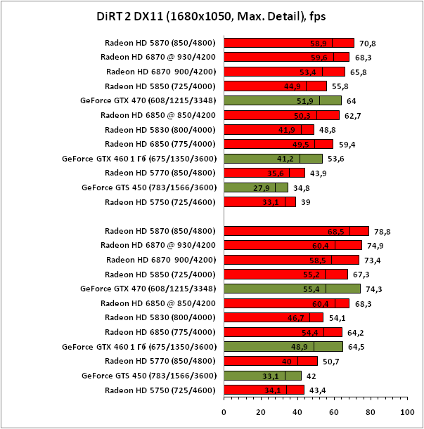 | NVIDIA GeForce GTS 450 1 Гб | NVIDIA GeForce GTX 460 1 Гбайт | NVIDIA GeForce GTX 470 1280 Мбайт | AMD Radeon HD 5750 1 Гбайт | AMD Radeon HD 5770 1 Гбайт | AMD Radeon HD 5830 1 Гбайт | AMD Radeon HD 5850 1 Гбайт | AMD Radeon HD 5870 1 Гбайт | AMD Radeon HD 6850 1 Гбайт | AMD Radeon HD 6870 1 Гбайт | |