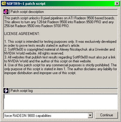 Для включения конвейеров необходимо пропатчить оригинальные драйвера скриптом, который лежит по адресу: папка установки RivaTuner/ PatchScripts/ ATI / SoftR9x00.