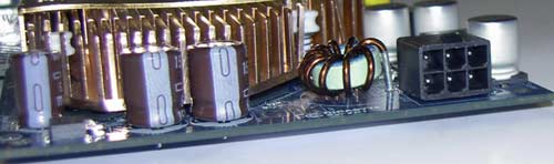 По сути, данная плата является аналогом RX800 XL, и объем памяти, и шина, и частоты - все одинаковое. Единственное различие заключается в количестве пиксельных конвейеров, которых у RX800 XL 16, а у нашей героини - всего 12. Производительность же карта показывает очень достойную, и в некоторых приложениях, особенно в режимах с активированным АА, смотрится лучше, чем Gigabyte 3D1. Разгонный потенциал - 430/1040MHz. Не очень много, но зато, опять же, вспомним, что эта карта изначально намного быстрее аналогов на базе Radeon X800. К тому же, Gigabyte оснастила столь производительное решение пассивной системой охлаждения, что, естественно, свело шум при работе к нулю, но температурные показатели при этом остались в пределах нормы - 55 градусов при тестировании на штатных частотах, и на пару градусов больше - при разгоне (без дополнительного обдува карты!).