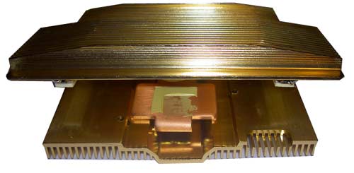 Представьте себе карту с уровнем производительности Radeon X800, даже выше, чем RX800, но при этом - абсолютно бесшумную. Представили? А теперь посмотрите на Gigabyte RX800 Turbo Force Edition. Не только продуктам на чипах калифорнийской компании суждено быть производительными и бесшумными. Gigabyte не обделила и канадцев, оснастив свое решение на базе Radeon X800 такой же системой охлаждения, какую мы уже видели на GeForce 6800 AGP в исполнении Gigabyte. Принцип остался тем же - два алюминиевых радиатора и пара тепловых трубок, которые отводят тепло на оборотную сторону платы с помощью медной пластины. Дабы исключить повреждения мелких элементов на плате, использованы защитные прослойки, которые прикреплены к тепловым трубкам на оборотной стороне платы. Четыре чипа памяти, расположенные на лицевой стороне платы, охлаждаются радиатором, а остальные четыре (на оборотной стороне), не оборудованы теплоотводами.  Одним из первых вопросов, который возникает, когда речь заходит о полностью пассивных системах охлаждения, является, само собой, вопрос температурных параметров. Можем сказать, что Gigabyte RX800 нас не разочаровала и в этом отношении - 55 градусов на дефолтных частотах. Графический процессор R430 имеет 12 пиксельных конвейеров и 6 вертексных юнитов. Стандартная частота работы - 400MHz.  На карту установлено 256Mb GDDR3 памяти с шиной передачи данных 256Bit. Восемь микросхем видеопамяти Samsung, выполненных в форм-факторе BGA, со временем выборки 2 ns. Это соответствует частоте 500MHz (1000MHz DDR). В отличие от стандартной частоты памяти на Radeon X800 (700MHz DDR), на данной карте память работает на 988MHz DDR.  Gigabyte RX800 не оборудована разъемом для дополнительного питания. Набор выходов - стандартный.  Переходим к тестированию. Тестовый стенд