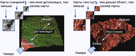 Основное преимущество HDM заключается в том, что, используя технологии типа тесселяции по глубине, вы можете получить достаточно детализированную сцену, используя базовую сетку с низким количеством полигонов и очень маленькие карты смещения (размером в несколько килобайт). Благодаря чему экономится пропускная способность памяти и AGP шины, в то же время получаемые сцены отличаются высокой детализацией.
