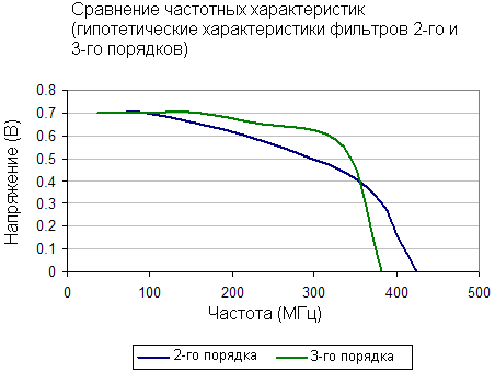 Фильтр 3-го порядка имеет более крутую частотную характеристику по сравнению с фильтром 2-го порядка зато пропускает меньше мусорных частот.