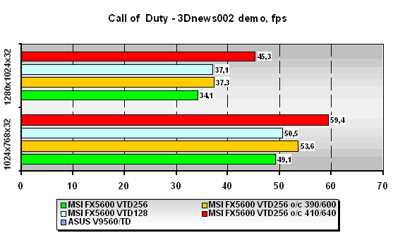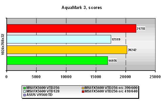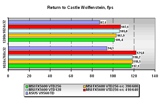 Картина схожая со всеми предыдущими тестами. Стоит отметить, что разница между MSI FX5600 VTD256 и MSI FX5600 VTD128 весьма несущественна.