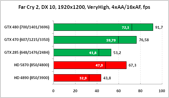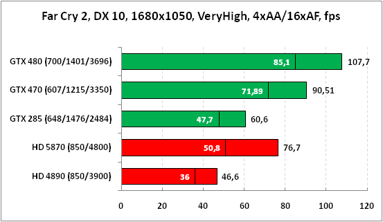 | FarCry2 DirectX 10 Benchmark | 1680x1050, 1920x1200 | DX10, Very High, 4xAA/16xAF |