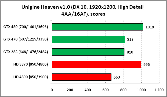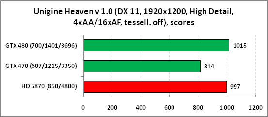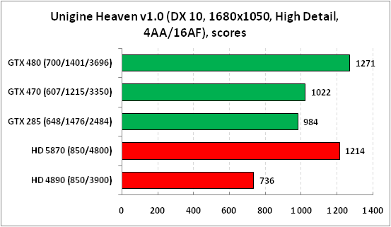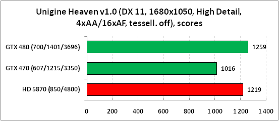 | Unigine Heaven v 1.0 | 1680x1050, 1920x1200 | DX10, High Detail, 4xAA/16xAF DX11, High Detail, Tessellation off, 4xAA/16xAF |