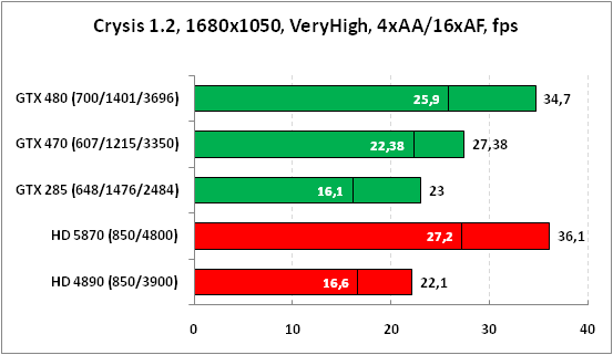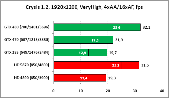 | Crysis v 1.2 x64 | 1680x1050, 1920x1200 | DX10, Very High, 4xAA/16xAF |