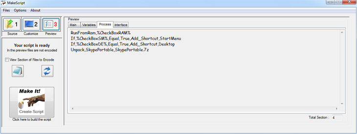 Если готовых скриптов для нужных вам приложений не оказалось в наличии, то придётся самостоятельно создать их. Для этого нам понадобится утилита MakeScript. Скачиваем архив со standalone-версией и распаковываем его, например, в C:\MakeScript. Оптимальный вариант — это использование portable-версий нужных приложений либо предустановка их на свой ПК. Во втором случае надо быть осторожней, так как большинство программ уже давно пишет гору данных в реестр, распихивает свои файлы по разным папкам на компьютере и делает массу других вещей при установке. Тем не менее, готовый скрипт может отсутствовать по причине лицензионных ограничений, хотя никаких проблем с самим приложением нет.