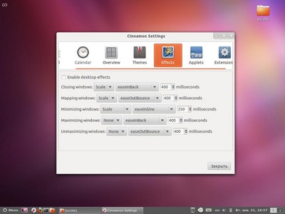 Собственно, всё – новая рабочая среда установлена и ей можно спокойно пользоваться. Для начала стоит покопаться в её настройках в утилите Cinnamon Settings. Здесь вы можете настроить внешний вид оболочки, изменить или отключить визуальные эффекты, выбрать расположение панелей и так далее.
