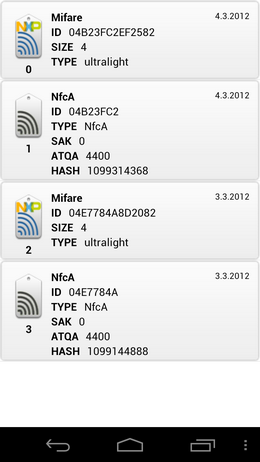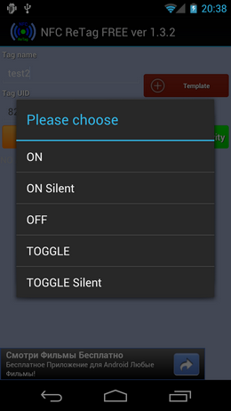Гораздо интереснее продукт NFC ReTAG FREE. С его помощью в теории можно перезаписывать полученные где-либо и уже использованные NFC-метки – временные пропуска, ценники и так далее – если вы, конечно, сможете их где-то раздобыть в России. Впрочем, куда более полезное свойство у этой программы совсем иного характера. Она умеет не только считывать любые метки, но и запоминать их ID с попутной привязкой какого-либо действия. Большинство других программ, умеющих вытворять такие штуки, обычно делают NDEF-записи (аналог MIME) в метке, которую потом читают, и запускают действие.