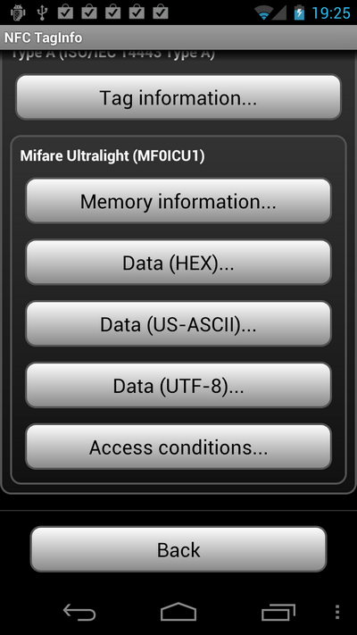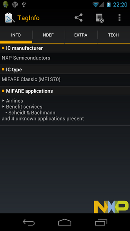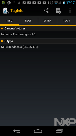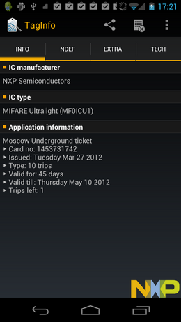 Для сканирования смарт-карт безотносительно места их применения, будь то транспорт или проход в золотохранилище, можно использовать, как выражаются сами разработчики, “программу — швейцарский нож” NFC TagInfo, написанную компанией NXP Semiconductors. Действительно, она позволяет узнать довольно много о смарт-картах, вплоть до дампа памяти. Ради интереса попробуйте просканировать имеющиеся у вас карточки. У нас, к примеру, в только полученной банковской карте обнаружился NFC-чип.