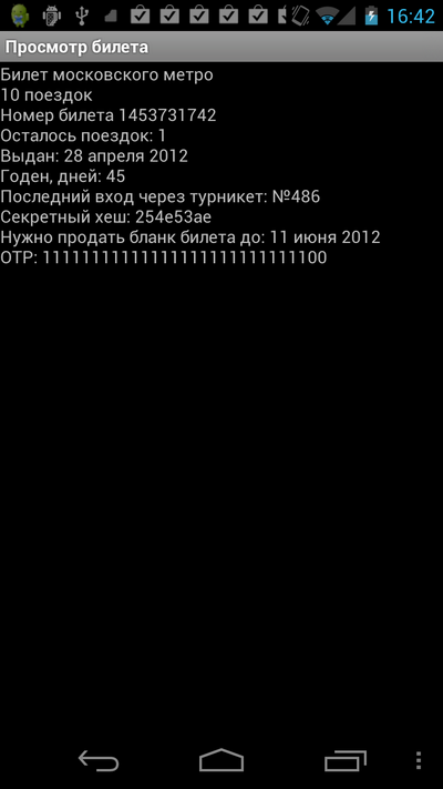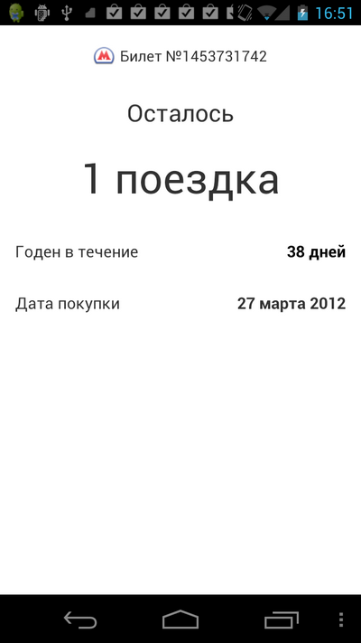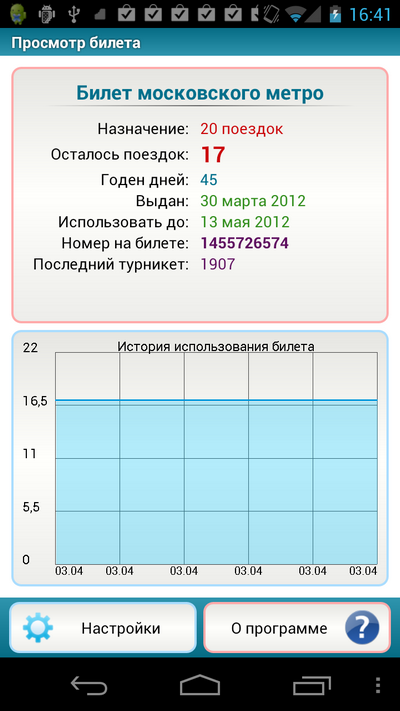 В московском метро (и не только) для одноразовых билетов используются как раз “ультралайтовские” решения. Имея специальный софт на телефоне, мы можем вытянуть некоторую информацию из них. Самая простая утилита так и называется – “Считыватель билетов на метро”. Прикладываете карту к телефону – и он сразу показывает оставшиеся поездки и срок действия. Помимо билетов на метро, программа работает с билетами “Мосгортранса”, а скоро появится поддержка карточек РЖД. Ещё одна софтина с незамысловатым именем “Информация о билетах” выдаёт чуточку больше этой самой информации. Ну и грех было бы не добавить такую функцию в программы для навигации по метро – “Яндекс.Метро” и “Карта метро”.