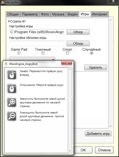 Помимо этих базовых жестов, разработчики могут добавить в приложение свои собственные. В основном связанные уже не с пассами руками, а c различным положением рук и тела. ASUS Xtion всё это неплохо распознаёт, а остальное уже зависит от создателей приложений. Вообще, преимущество Xtion в том, что с его помощью в теории можно управлять некоторыми уже существующими играми без переделки оных. Пока что список их невелик — NFS 11, Street Fighter IV, Virtual Tennis 2009, Virtua Tennis 4, Angry Birds и Fruit Ninja. Впрочем, как показывает опыт Kinect, далеко не для всех игр и приложений этот контроллер вообще будет уместным.