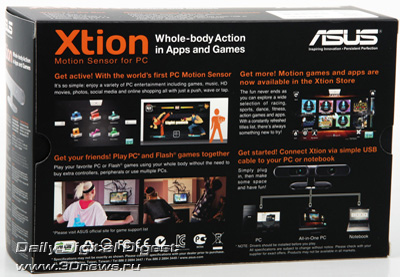 Секрет столь заметного сходства между Xtion и Kinect в том, что оба продукта базируются на технологии распознавания движений от маленькой израильской компании PrimeSense. Однако продукт ASUS гораздо компактнее (180x35x50 мм), так как в нём используется лишь один сенсор. Есть и более навороченная версия Xtion Live, в которой уже две камеры, но она пока что предназначена в первую очередь для разработчиков. Младший Xtion также имеет модификацию с SDK в комплекте. Обе модели, как Kinect, поддерживают открытый драйвер OpenNITE и программную прослойку для упрощения процесса создания приложений от PrimeSense. Впрочем, вернёмся к ASUS Xtion и рассмотрим его поподробнее.