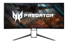 Другой изогнутый монитор, Optix MEG381CQR, имеет размер матрицы 38 дюймов с небольшой кривизной 2300R, но в данном случае не так интересны характеристики изображения (тоже вполне респектабельные), как экспериментальный подход MSI к эргономичности и функциям устройства. Тайваньцы встроили в нижнюю рамку экрана миниатюрный OLED-экран, который демонстрирует рабочие параметры самого монитора или подключённого к нему компьютера. Ещё одна любопытная особенность — это фронтальная камера, которая распознаёт лицо пользователя и автоматически задействует персонализированные настройки. Насколько велика польза от таких нововведений, решать владельцам Optix MEG381CQR, но в перспективе возможности интерфейса ограничены только программным обеспечением. Сейчас на нём можно увидеть даже погоду на улице или, вращая ручку управления, на ходу разгонять видеокарту десктопа MSI MEG Aegis Ti5 (у которого тоже есть собственный OLED-индикатор). Кстати, с точки зрения механики «крутилка» сделана очень добротно — как, собственно, и весь монитор, включая плавные шарниры и цельнометаллическое основание подставки.