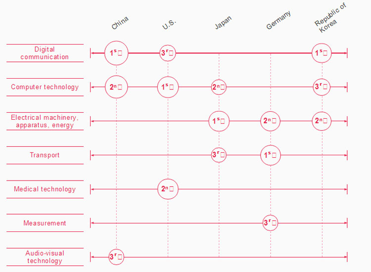 Число патентных заявок из Китая выросло в 2019 году на 11 % и достигло 58 990. Немалую роль в этом сыграли огромные субсидии центральной власти страны, которая учредила программы и фонды для развития передовых отечественных технологий. Благодаря этому наибольшее развитие в последние годы в Китае получили такие области науки и техники, как дроны, ИИ и регенеративная медицина.