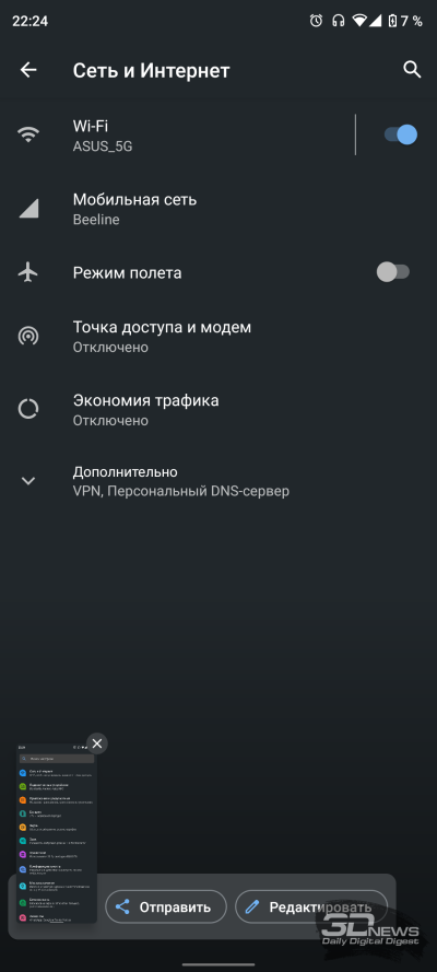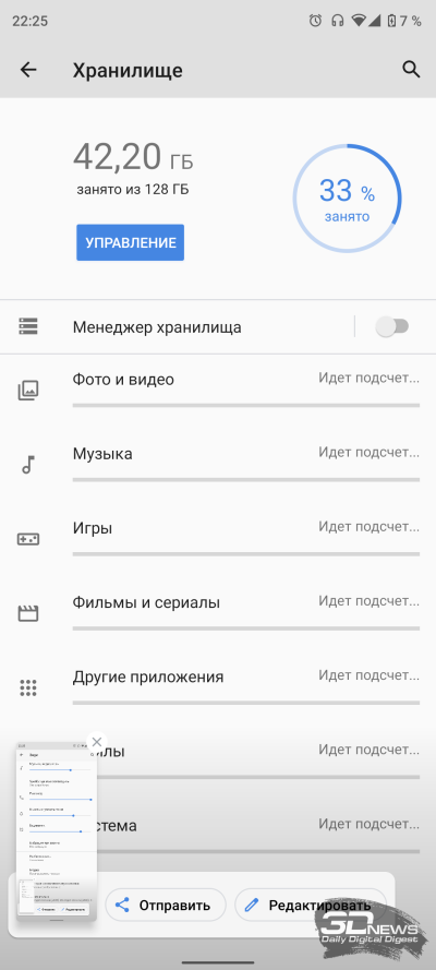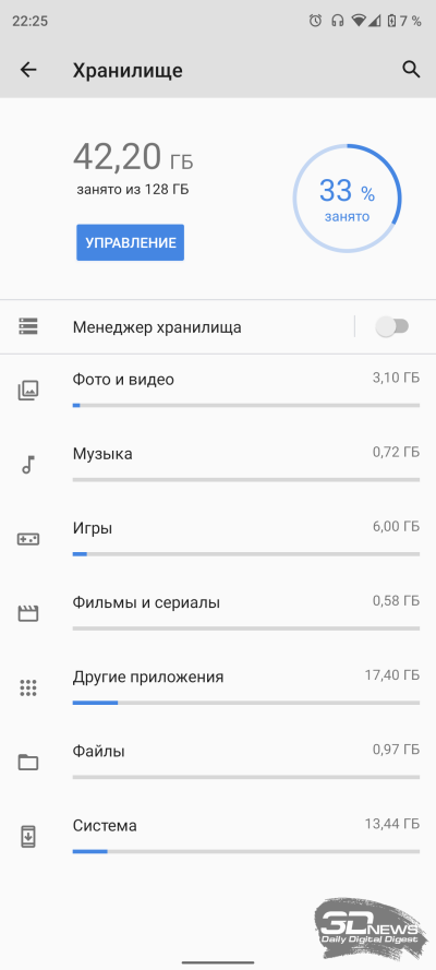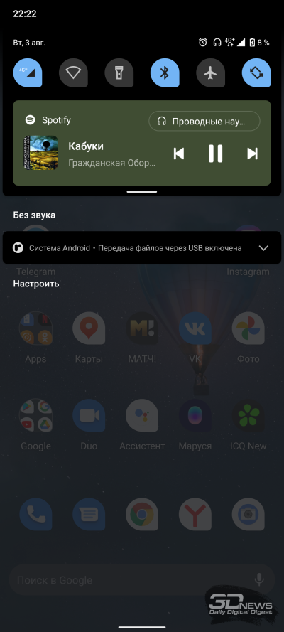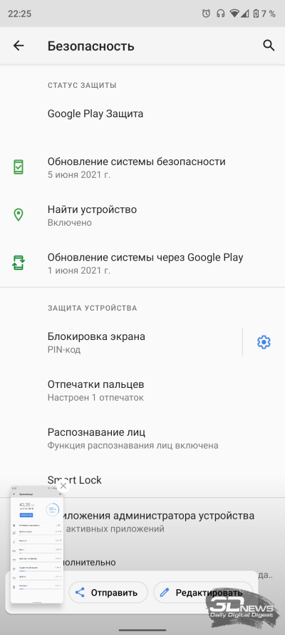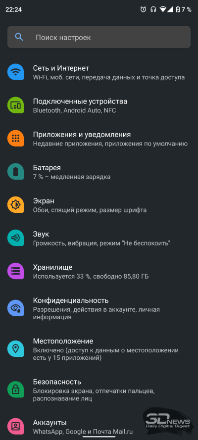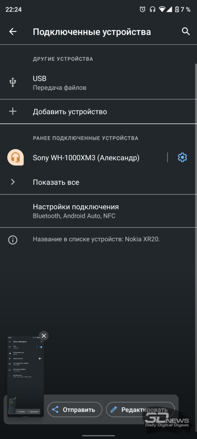 Также корпус влагозащищен по стандарту IP68 – смартфон можно держать на глубине до полутора метров в течение часа. При этом на корпусе есть не только порт USB Type-C, но мини-джек — который Apple когда-то убрала из iPhone под предлогом добавления защиты IP67, напомню. Никому он не мешает. Фактически единственный момент с портами, который как-то говорит об особой защите корпуса, связан со слотом для SIM-карт и карты памяти, который получил дополнительное уплотнение, — он более туго, чем обычно, выдвигается из своей пазухи. Я даже немного погнул штырек-скрепку при нажатии.