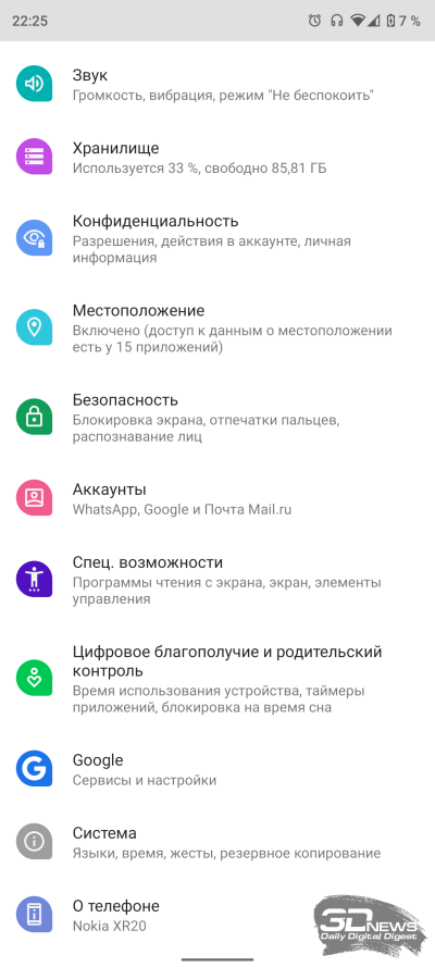 Работает Nokia XR20 под управлением «чистого» Android 11 — без каких-либо оболочек и, по сути, без предустановленных производителем приложений. За исключением, конечно, законодательно обусловленного пакета с российскими сервисами, от которого можно отказаться при первом запуске смартфона. Nokia обещает три года обновлений ОС в целом и четыре года обновлений, связанных с безопасностью.