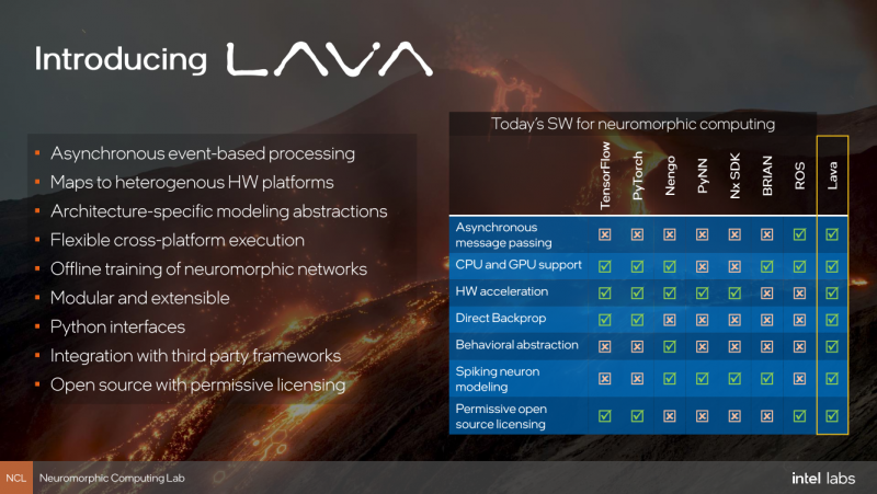 В целом, области применения и задачи новинок совпадают с теми, что сейчас обслуживают «классические» нейронные сети (с поправкой на энергоэффективность). Однако одного «железа» для распространения мало, поэтому Intel подготовила универсальный open source фреймворк LAVA, который позволит унифицировать разработку и подготовку моделей для практических любых аппаратных решений (не только нейроморфных) с учётом специфики конкретных архитектур.