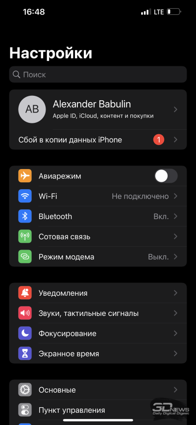 Смотреть все изображения (43) Видеосъемка доступна в разрешении вплоть до 4K с частотой до 60 кадров в секунду, цифровая стабилизация работает при любом разрешении и любой частоте, причем для всех трех камер. Есть возможность съемки в формате HDR с немедленной конвертацией в Dolby Vision HDR, в том числе и при 60 кадрах в секунду, а не при 30 кадрах, как ранее. А вот свободное переключение между тремя камерами доступно только вплоть до 4K 30p — на 60 кадрах в секунду можно переключаться только между основной камерой и зум-модулем или снимать отдельно на широкоугольный модуль. В целом же по качеству видеосъемки iPhone традиционно смотрится очень сильно. Для рассказа о функции «Киноэффект» представители Apple рекомендовали нам привлечь профессионалов киносъемки, но, думается, все-таки ключевым моментом, который привлечет реальных профи, станет захват несжатого видео в формате ProRes — опция, которая пока еще недоступна и появится на старших айфонах в более поздних прошивках. Киноэффект же доступен уже сейчас. По сути своей это тот же портретный режим, только для видео, но к программному размытию заднего плана здесь добавляется очень плавная работа автофокуса. Его можно переключать как вручную, выбирая точку на экране, так и оставлять все автоматике, которая вполне успешно «видит» человека в кадре и удерживает его в фокусе, равно как и возвращается к нему, если увести ракурс в сторону. Днем «Киноэффект» работает ожидаемо лучше, чем в темноте, но в любом случае — функция отличная и реализована на превосходном уровне. Фронтальная камера та же, что и раньше – 12 Мп, ƒ/2,2, фиксированный фокус. В компании с ней работает датчик глубины, выполняя роль помощника для создания искусственного боке. Добавлена возможность выбора угла съемки — можно фотографировать как с максимальным углом обзора (используется вся поверхность сенсора, 12 Мп), так и с зауженным (примерно 7 Мп), есть ночной режим. В целом неплохая селфи-камера, но не слишком впечатляющая. Пора бы ее уже обновить. ⇡#Автономная работа и зарядкаПро некоторые проблемы с нагревом и троттлингом мы уже сказали чуть выше, но «горячая» платформа не означает, что она не энергоэффективна, как получилось со Snapdragon 888. В данном случае с эффективностью как раз все отлично — айфоны, которые многие годы были примерами смартфонов с недостаточной автономностью, вдруг если не вырвались в лидеры, то по крайней мере смотрятся совсем не стыдно. К тому же и батареи на них устанавливают теперь более емкие: в iPhone 13 — 12,31 Вт·ч (3240 мА·ч, 3,8 В), в iPhone 13 Pro Max – 16,58 Вт·ч (4352 мА·ч, 3,8 В). В результате смартфоны без каких-либо проблем работают весь день на одном заряде даже при серьезной нагрузке. В кои-то веки не нужно таскать с собой внешний аккумулятор. В нашем традиционном тесте с воспроизведением Full HD-видео при включенных уведомлениях и подключении к Wi-Fi-сети iPhone 13 продержался чуть больше 13 часов, а iPhone 13 Pro Max и вовсе 19 часов. Замечательные результаты. Как и в прошлый раз, в комплекте с новыми iPhone нет зарядного устройства, но лежит провод Lightning ↔ USB Type-C. Надо либо использовать адаптер, который вы покупали к прошлому iPhone, либо покупать новый. iPhone 13 Pro Max поддерживает проводную зарядку мощностью до 27 Вт и беспроводную, MagSafe, мощностью 15 Вт. Поскольку 27-ваттного зарядника у меня не было, я проверил скорость зарядки только с наиболее распространенным адаптер