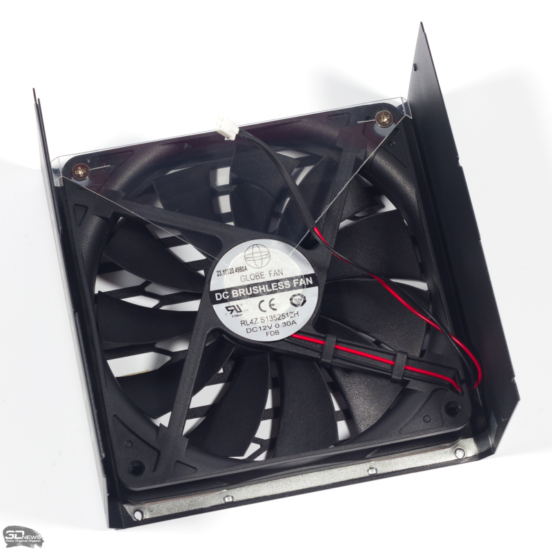Блок питания собран в корпусе глубиной 150 мм и охлаждается вентилятором типоразмера 135 мм. Переключатель режимов охлаждения отсутствует, и вентилятор Chieftec Vega M вращается непрерывно, пока компьютер включен.
