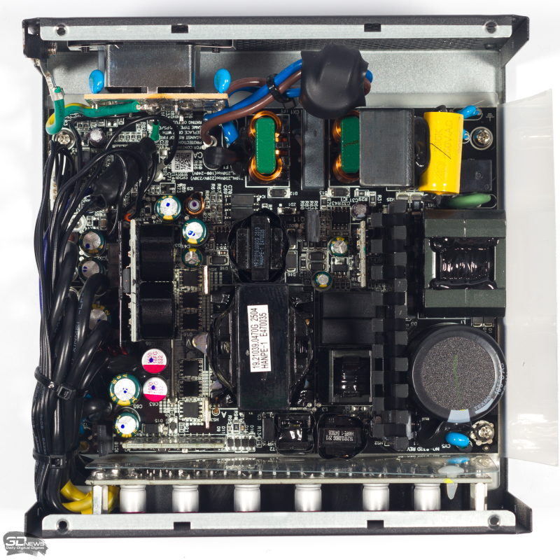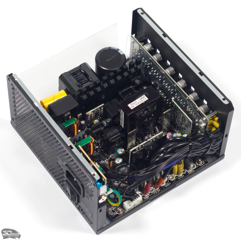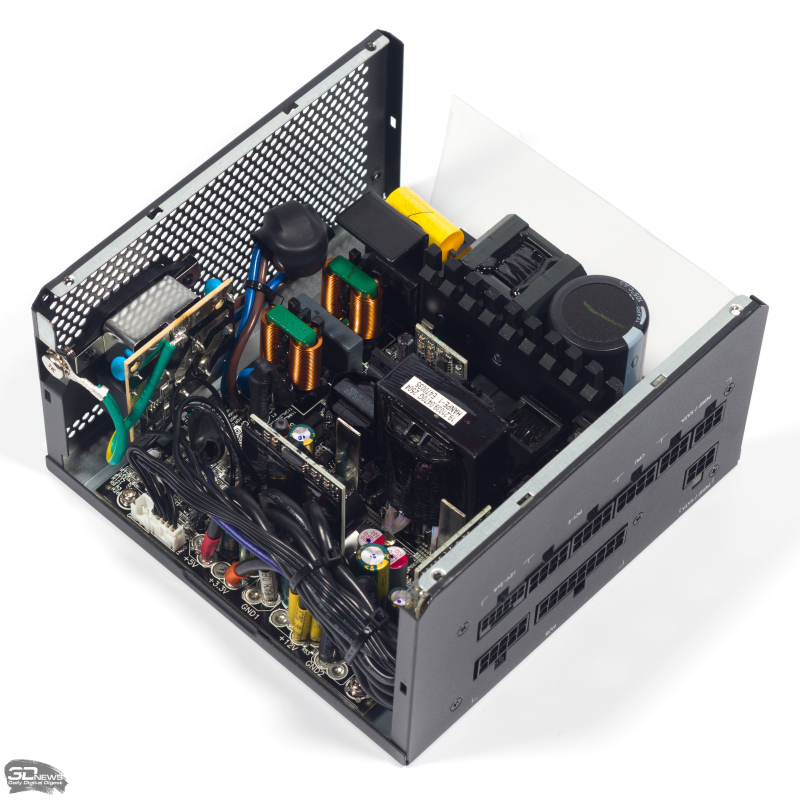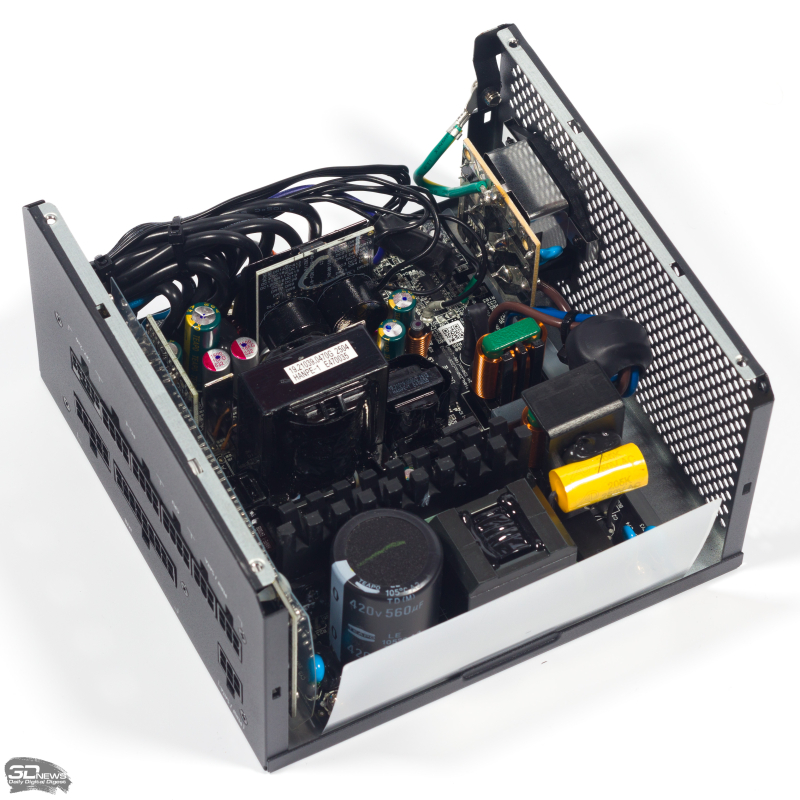OEM-производителя начинки БП мы не смогли определить, и выглядит она необычно.