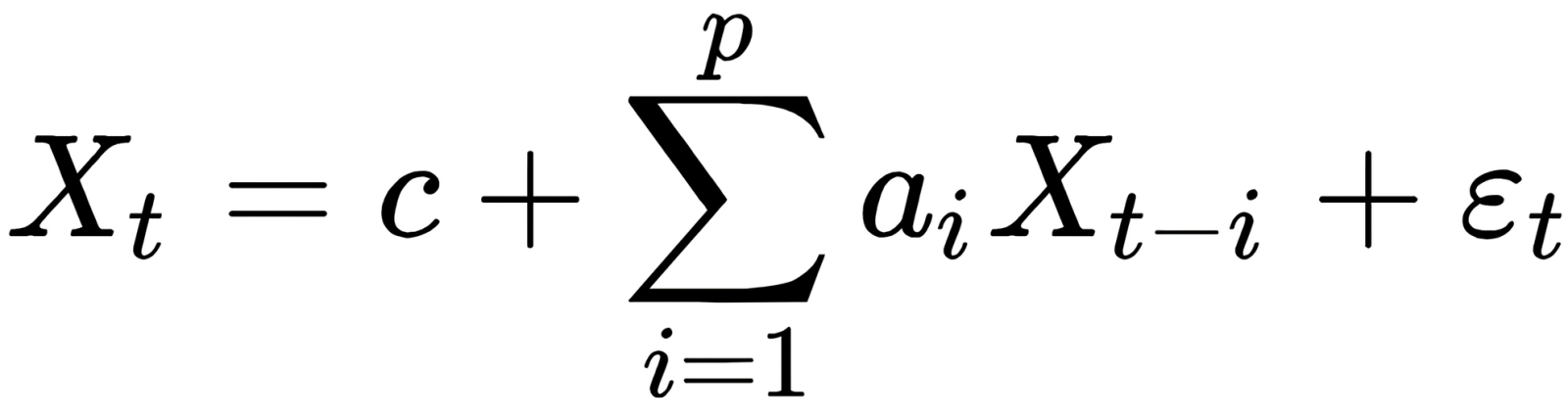 Статистическая формула авторегрессионного процесса имеет немало общего с формулами матричного умножения, на котором базируются актуальные ИИ-модели. По сути, здесь производится то же самое взвешенное суммирование (в данном случае — предыдущих значений статистического ряда с некоторыми весами, а именно с коэффициентами авторегрессии), только добавлен ещё один член, стоящий в этой записи последним, — он учитывает влияние белого шума, внося тем самым в вычисление очередного значения в последовательности некоторую стохастику. Другой важный момент: для t-го члена последовательности суммирование ведётся по предыдущим членам с номерами (в обратную сторону) не от t до 0, а от t − 1 до t − p, где в общем случае p ≠ t (источник: Wikimedia Commons)
