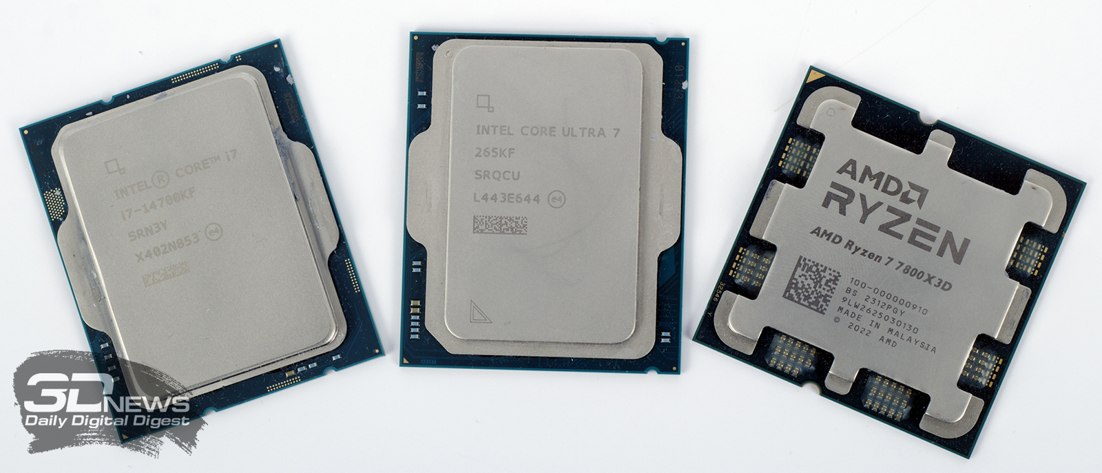 В любом случае у того же Core Ultra 7 265KF есть еще один неоспоримый плюс: максимальное энергопотребление чипа достигает 220 Вт — это даже меньше, чем у Core i7-13700KF. В это же время потенциал Core i7-14700K(F) искусственно ограничен и составляет 253 Вт. К такому энергопотреблению 20-ядерник поколения Raptor Lake приходит уже при загрузке 17 потоков из 28. Интересно, что в играх Core Ultra 7 265KF потребляет и греется меньше и Core i7-14700K(F), и Ryzen 7 9800X3D — разница не существенная, но она все же есть. Для некоторых пользователей эти параметры тоже важны.