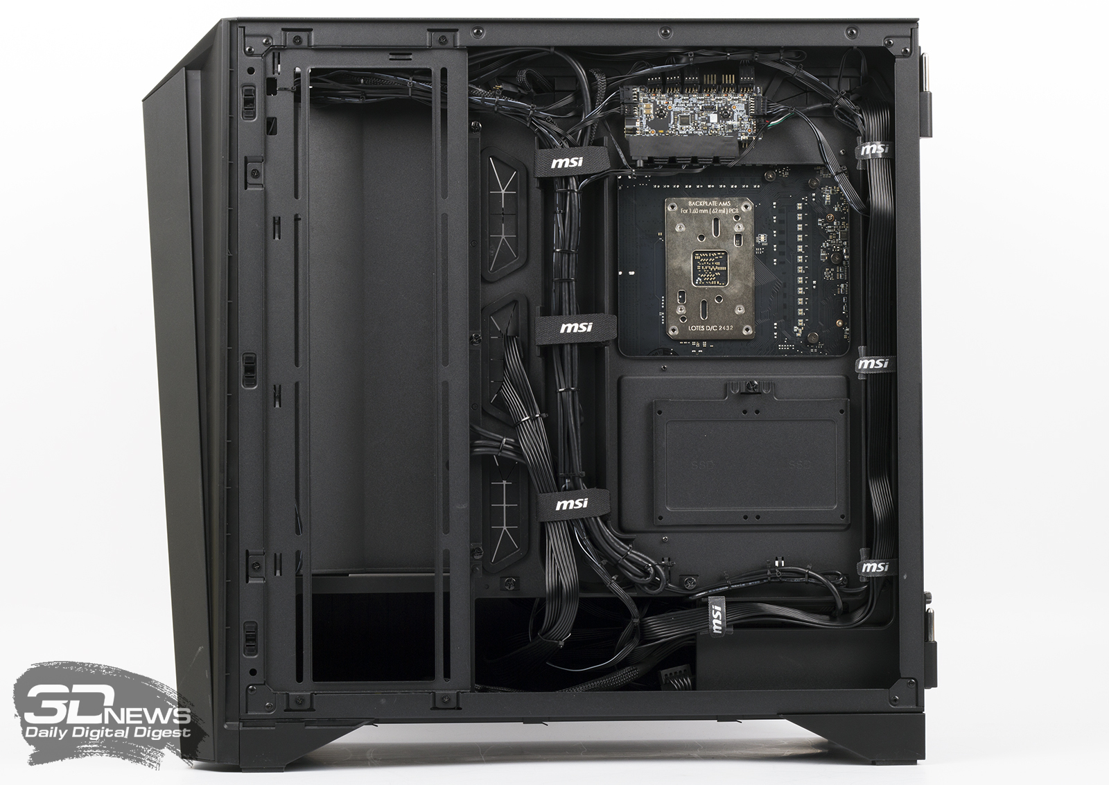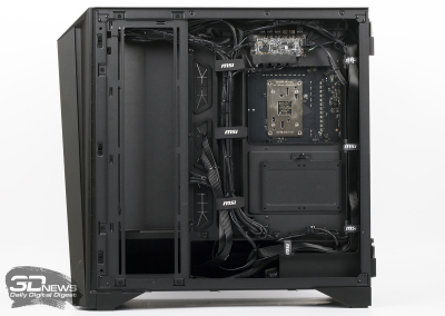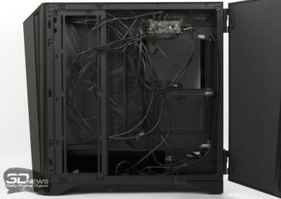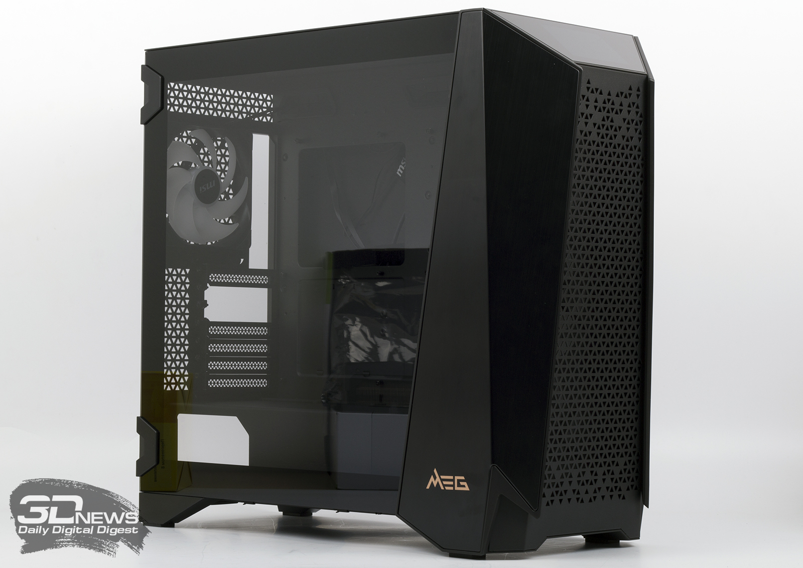 Масса устройства составляет 21,5 кг. Корпус получил массивные дверцы — одна из них выполнена из прочного закаленного стекла. Пространства за шасси — предостаточно. В плане удобства кабель-менеджмента MEG PROSPECT 700R легко посоперничает с корпусами-аквариумами.