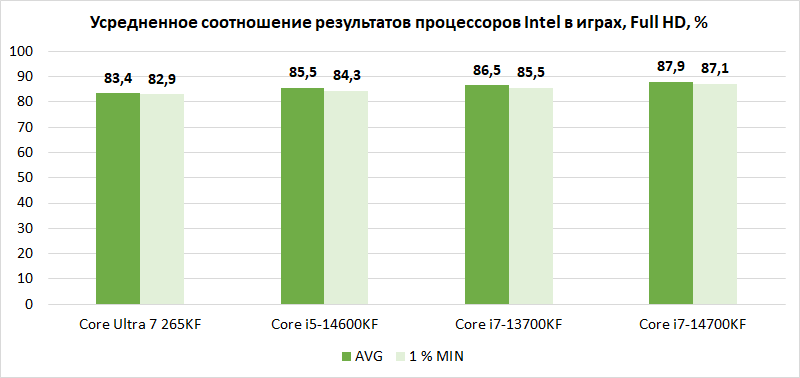 Что интересно, при использовании в системе GeForce RTX 5070 Ti разница между Core Ultra 7 265K(F) и Core i7-14700K(F) становится совсем мизерной — наши графики это наглядно демонстрируют. Значит, платформу LGA1851 вполне можно рассматривать в качестве достойной альтернативы для продвинутой сборки. Надеюсь, падение цен на чипы серии Core Ultra 200 продолжится и далее.
