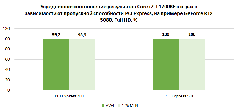 В любом случае, какой бы центральный процессор, вы ни выбрали, его стабильная работа должна быть обеспечена правильно подобранной материнской платой. Детально этот вопрос разобран в статье «Компьютер месяца, спецвыпуск: всё об апгрейде игровых ПК и его необходимости». У любой материнской платы есть множество характеристик. В продвинутой сборке рекомендуются устройства, поддерживающие стандарт PCI Express 5.0. В то же время не случится ничего страшного, если вы сэкономите на плате и приобретете модель с поддержкой интерфейса PCI Express 4.0. Я протестировал систему с Core i7-14700KF и GeForce RTX 5080 при помощи модели MSI PRO B760-P II — сколько-нибудь заметная разница в игровой производительности наблюдается только в разрешении Full HD. Да и то полученные результаты в первую очередь связаны с использованием разных настроек BIOS, отладкой таймингов оперативной памяти, частотной стабильности внутренних шин и элементарной погрешностью измерений. В конце концов, на сегодняшний день GeForce RTX 5080 уступает в производительности GeForce RTX 4090 около 20 % в разрешении Ultra HD при использовании трассировки лучей. Если последней достаточно возможностей интерфейса PCI Express 4.0, то отчего такой пропускной способности вдруг не хватит более медленным GeForce RTX 5080 и GeForce RTX 5070 Ti? Вопрос риторический.