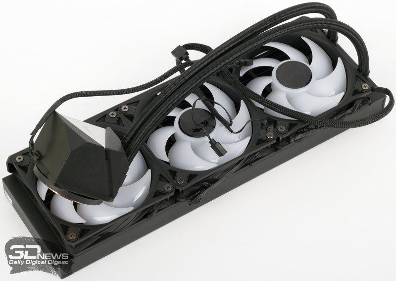 Детальный обзор MAG CORELIQUID I360 выходил на нашем сайте. Система охлаждения удостоена награды «3DNews рекомендует» — за высокую эффективность охлаждения, когда устройство справляется с крайне высокой нагрузкой, и низкий уровень шума вентиляторов в сравнении с конкурентами. Помпа СЖО работает бесшумно. Радует и увеличение гарантийного срока с трех до пяти лет.
