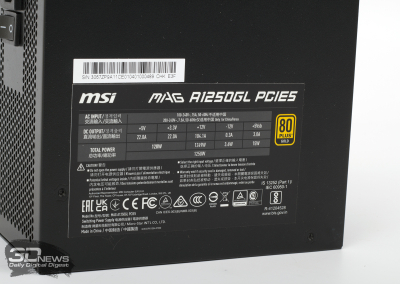 - блок питания MSI MAG A1250GL PCIE5, 1250 Вт;