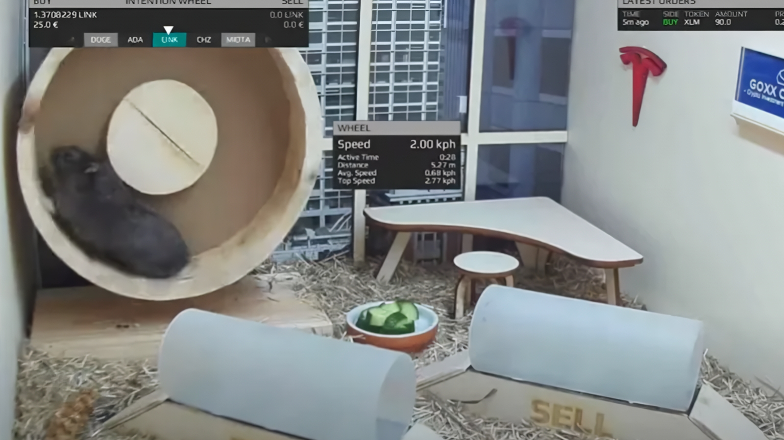 Мистер Гокс без устали трудится в комфортабельном германском офисе в последние дни своей суперуспешной трейдерской карьеры, безвременно прервавшейся, увы, в ноябре 2021 г. вследствие естественных для хомячков причин (источник: Goxx Capital)