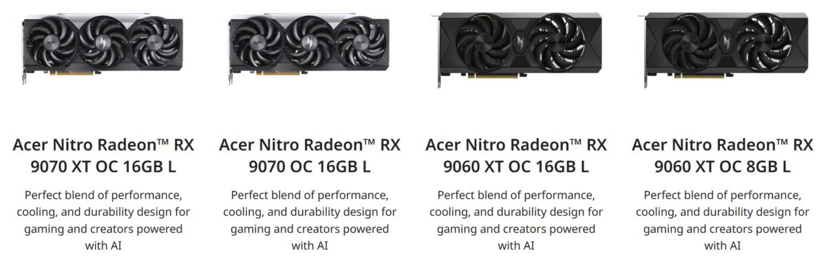 Это незначительные изменения, но всё же стоит знать, что такие модели существуют. Acer редко освещается в СМИ, поскольку компания обычно не предоставляет образцы видеокарт RX 9000 для прессы. Столкнувшись с этими вариантами видеокарт, имейте в виду, что они медленнее оригинальных моделей.