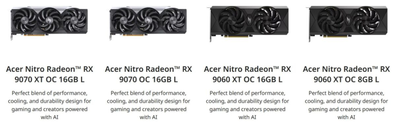 Компания Acer выпустила несколько видеокарт Radeon RX 9000 в рамках своей серии Nitro L. От ранее выпущенных моделей Nitro они отличаются частотами, энергопотреблением, а также оформлением.