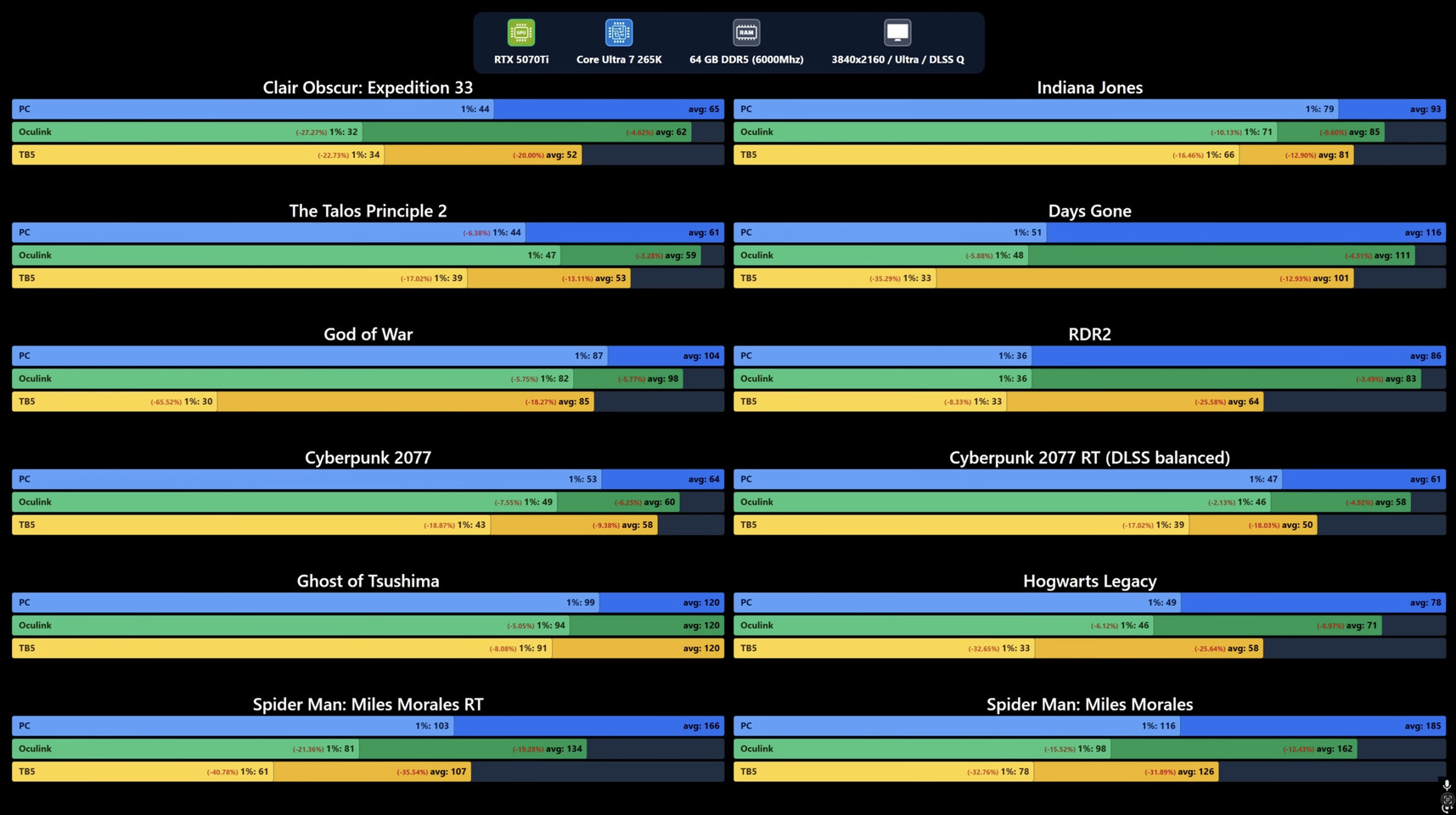 OCuLink оказался быстрее Thunderbolt 5 — тесты показали до 16 % прироста FPS в играх