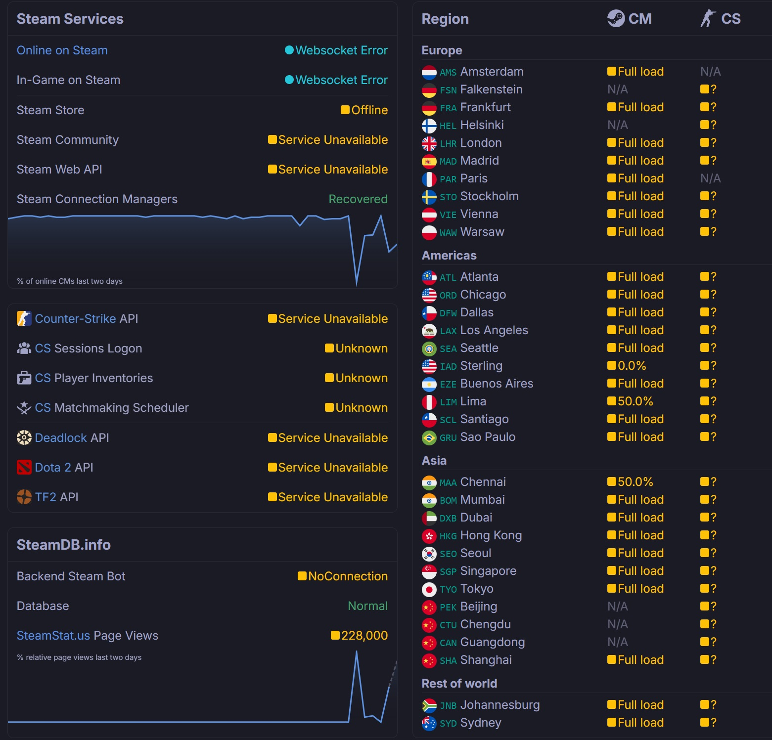 На форуме Reddit о проблемах с доступом Steam на протяжении последних часов также сообщали жители Австралии, Великобритании, Сингапура, Филиппин, Южной Африки, Центральной Европы и других территорий.