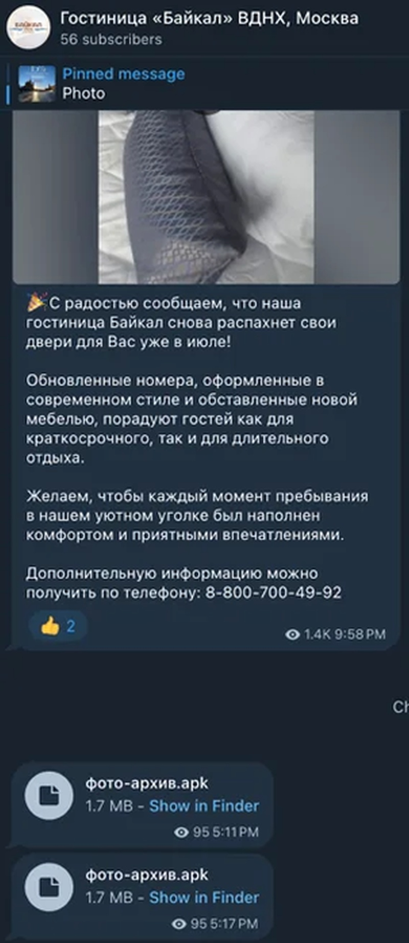 С этих сайтов-двойников посетители перенаправляются на каналы Telegram, где размещены ссылки на вредоносный APK-файл с искусственно завышенным количеством загрузок и массой поддельных отзывов. Для повышения успешности установки вредоносное ПО часто сопровождается простыми пошаговыми инструкциями, побуждающими пользователей обходить встроенные предупреждения безопасности Android.