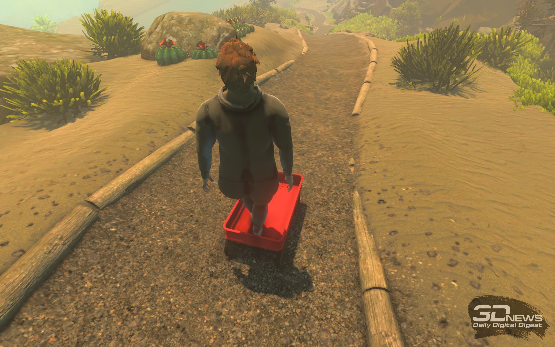 Играли на PC У меня было два блистера валидола, семьдесят пять таблеток магния B6, 5 пакетиков успокоительного сбора, наполовину наполненная лавандой игрушка-антистресс и целое море разных штук типа афобазола, ново-пассита и глицина, а также литр пустырника, литр корвалола, ящик настойки пиона, пинта чистой валерьянки и 12 пузырьков тенотена. Не то чтобы все это было категорически необходимо для игры в Baby Steps, но, если уж начал ее проходить, лучше подготовиться как следует. ⇡#Пошаговая стратегияКогда я впервые узнал, что Гейб Куззилло, Мэтт Бош (APE OUT) и Беннет Фодди (Getting Ovet It) объединились, чтобы сделать что-то совместное, я сначала очень обрадовался, а потом засомневался, как это бывает, когда слышишь об образовании очередной супергруппы. По именам вроде бы круто (редко когда столь яркие представители инди-сцены объединяются — сейчас мы чаще слышим о распадах студий, чем наоборот), но не будут ли два гейм-дизайнера тащить канат каждый в свою сторону? Вдобавок главные творения Куззилло и Фодди были очень непохожи друг на друга: веселый околоджазовый эксперимент в стиле Hotline Miami и самый надежный триггер нервного срыва в видеоигровом мире. Только по Мэтту Бошу не было вопросов — он просто напишет музыку (которая создавала кайф от APE OUT минимум процентов на 70). ![]() Нейтан может испачкаться в процессе своего путешествия, равно как и помыться — игра невероятно реалистична Что ж, по итогу можно сказать — черт знает, кто в этом триумвирате захватил лидерство, но больше всего похоже на самый известный проект Беннетта Фодди. Не то чтобы это было плохо. Очень даже наоборот. Суть Baby Steps, на самом деле, описывается двумя словами — "симулятор ходьбы". В полновесном смысле этого словосочетания, а не в том, к чему мы привыкли. Главный герой игры, Нейтан, несколько, кхм, засиделся на диване, но его неведомой силой затягивает в мир по ту сторону экрана, где ему предстоит… ну, ходить, да. Один курок геймпада (или клавиша мыши) на одну ногу, второй — на другую. И так раз за разом, шаг за шагом. Руки болтаются вдоль туловища бесполезными кусками плоти, включает их Нейт только когда надо встать с поверхности, если вдруг упал. То есть на самом деле руки он включает часто. Очень часто. Невыносимо часто. Если вы играли в Getting Over It или хотя бы слышали о ней — понимаете, откуда растут корни той боли, которую вы, несомненно, будете испытывать, играя в Baby Steps. Ведь Нейтану почти не придется ходить по ровным дорожкам. Ему придется взбираться в гору, сновать по пещерам, пытаться преодолеть ступени (высотой с его рост), лазать по камням, нащупывая не то что точку опоры, а тот самый единственный, драгоценный пиксель опоры. И, не найдя его, падать. На спину, на живот, на пятую точку, в пропасть, с той самой горы, на которую вы только что карабкались полчаса. И нет, в Baby Steps нет никаких сохранений. ![]() Людвиг и Старина Кос, глотайте пыль. Видите вон тот кубок на кибитке? Сначала его попробуйте достать, а потом поговорим о соулслайках И ловкачом Нейтана назвать ну никак нельзя. Он отлично может стоять на одной ноге, неплохо держит баланс при ходьбе по одиночным доскам и может на удивление ловко без рук карабкаться по камням, если вы нащупали нужные «пиксели опоры». Все, на этом достоинства безвременно оскуфевшего протагониста заканчиваются — рулить им придется, проявляя чудеса ловкости в обращении 