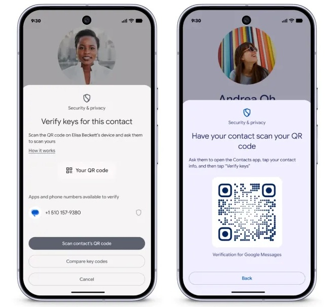 Для более технически подкованных пользователей компания добавила функцию проверки ключей в приложении Google Сообщения. Она помогает идентифицировать собеседника и гарантирует сквозное шифрование и конфиденциальность переписки. Пользователи Android 10 и более поздних версий могут отсканировать QR-код контакта для подтверждения.
