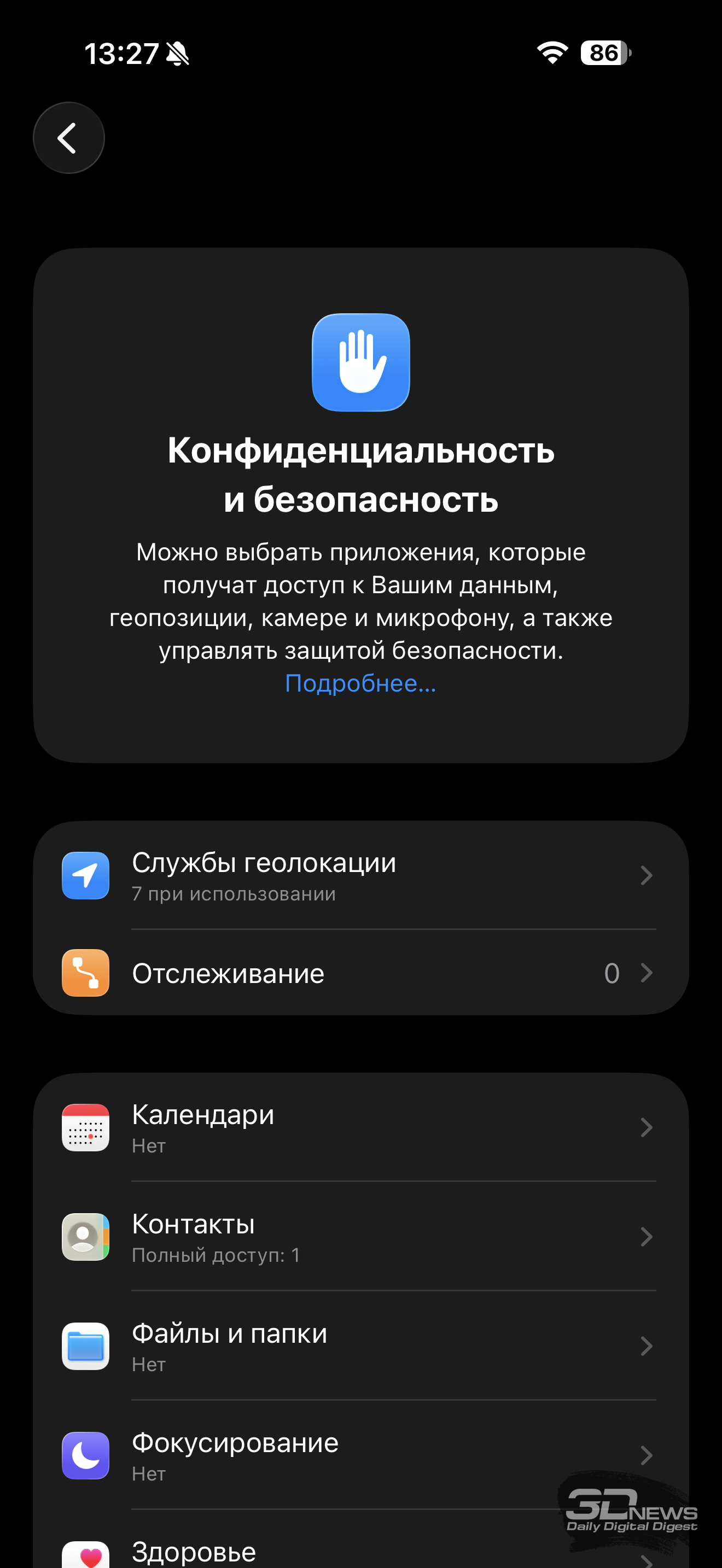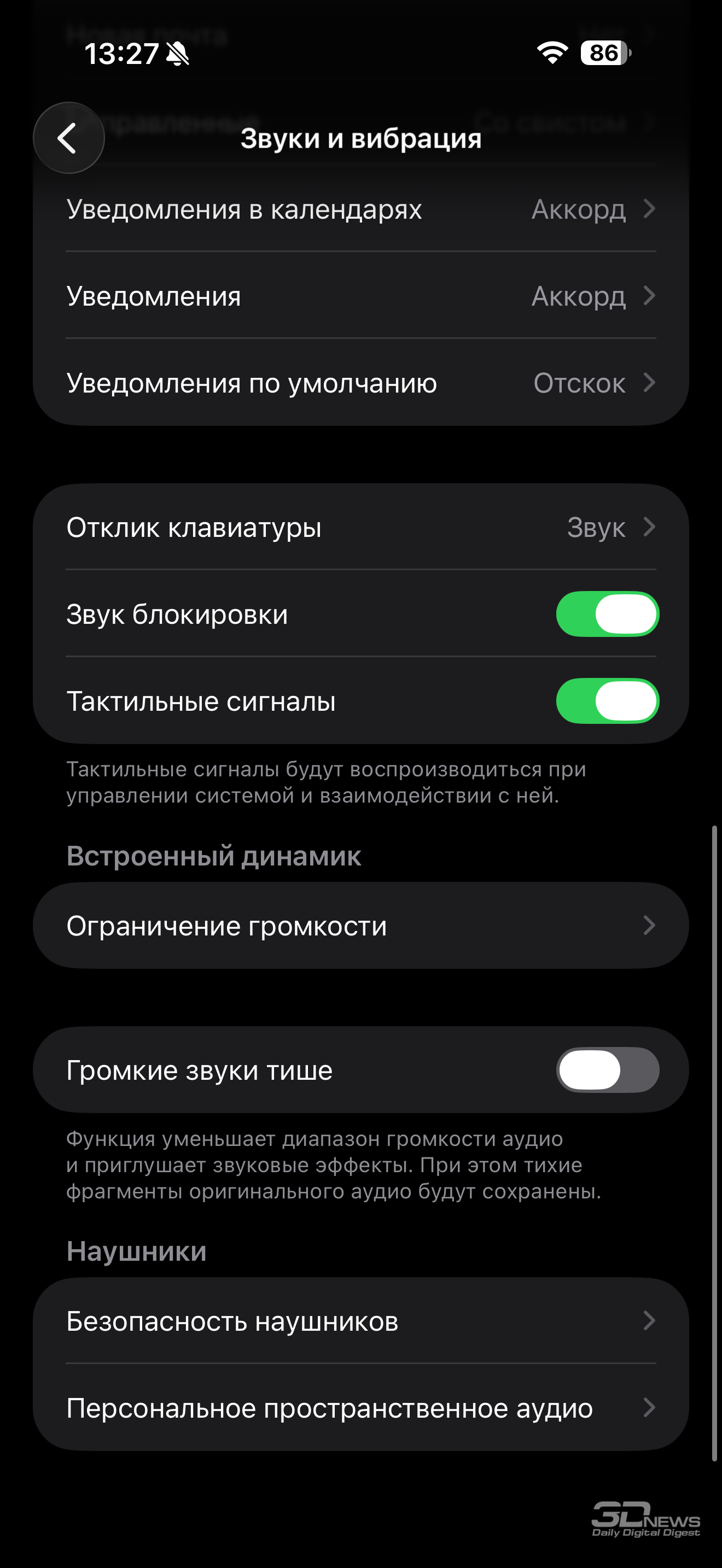 Да, версия эта по сравнению с актуальными смартфонами порой урезанная – где-то отображение информации на заблокированном экране недоступно, где-то еще что, но каких-то особенностей в сравнении с тем же iPhone 17 у iPhone 17 Pro Max в программном плане нет. Так что могу только отослать к нашему обзору базовой модели, а здесь ограничиться своим мнением по поводу полностью сменившей дизайн-код операционки.