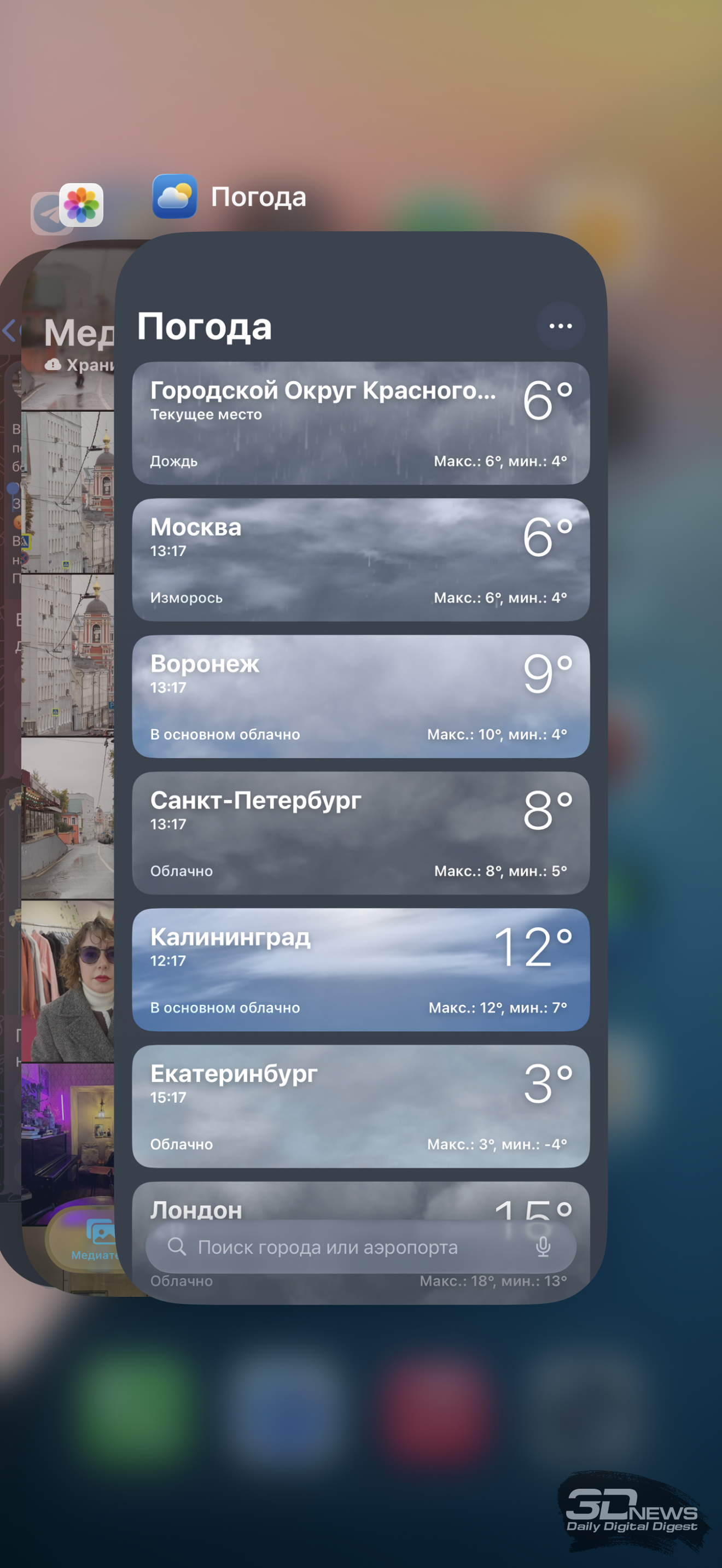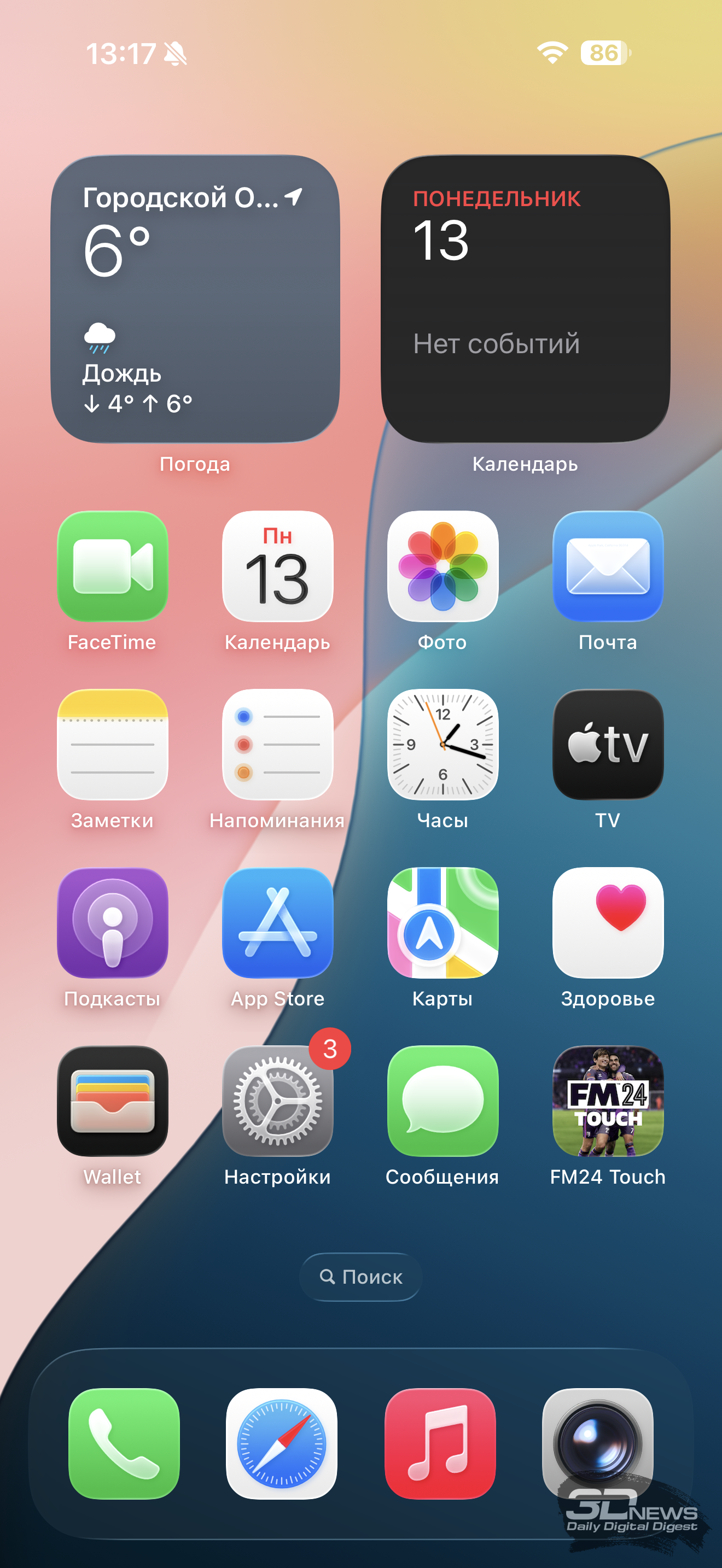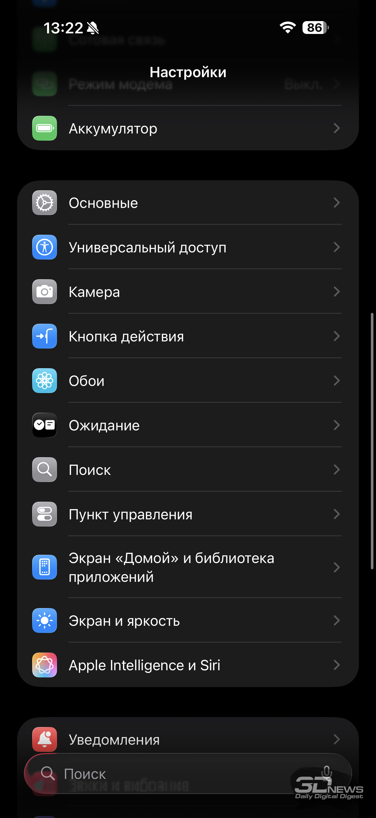 Согласен с Андреем Созиновым, сделавшим обзор iPhone 17, с тем, что сам по себе интерфейс Liquid Glass с полупрозрачными элементами и перерисованными шрифтами выглядит не хуже и не лучше прежнего. Точнее, мнения могут быть разные – это сугубо дело вкуса. Мне скорее нравится. Другое дело, что местами полупрозрачные элементы действительно сливаются с фоном, особенно уведомления на заблокированном экране – приходится лишний раз разблокировать смартфон и смотреть сообщение целиком. Также из-за полностью сменившегося дизайн-кода некоторые приложения работают неидеально, но это действительно вопросы времени, скоро все адаптируется. Любые текущие неудобства можно списать на то, что ОС свежая, и нужно время всем на притирку, в том числе и пользователям. Хотя, к примеру, приложение камеры с горизонтальной каруселью «невидимых» (пока не начнешь мотать, не поймешь, что они там есть) режимов съемки мне не понравилось довольно активно – хотя за пару недель привык и к нему.