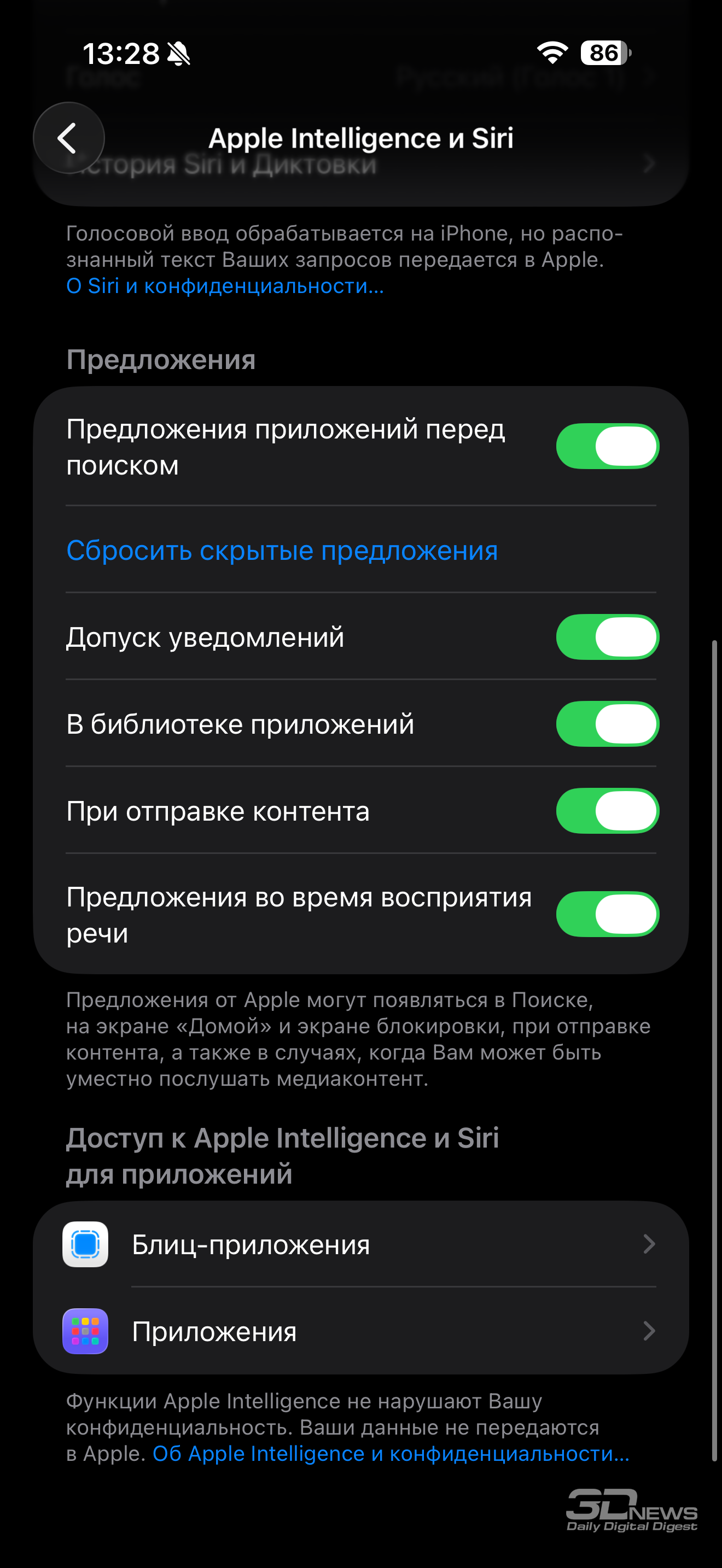 Что касается функциональности, то каких-то кардинальных изменений в сравнении с iOS 18 нет, а главная фишка системы, ИИ-подсистема Apple Intelligence, по-прежнему не работает как должно и вдобавок недоступна на ряде рынков, в том числе и в России. Что касается стабильности и быстроты работы, то тут, как обычно у Apple, все для актуальной модели отлично.