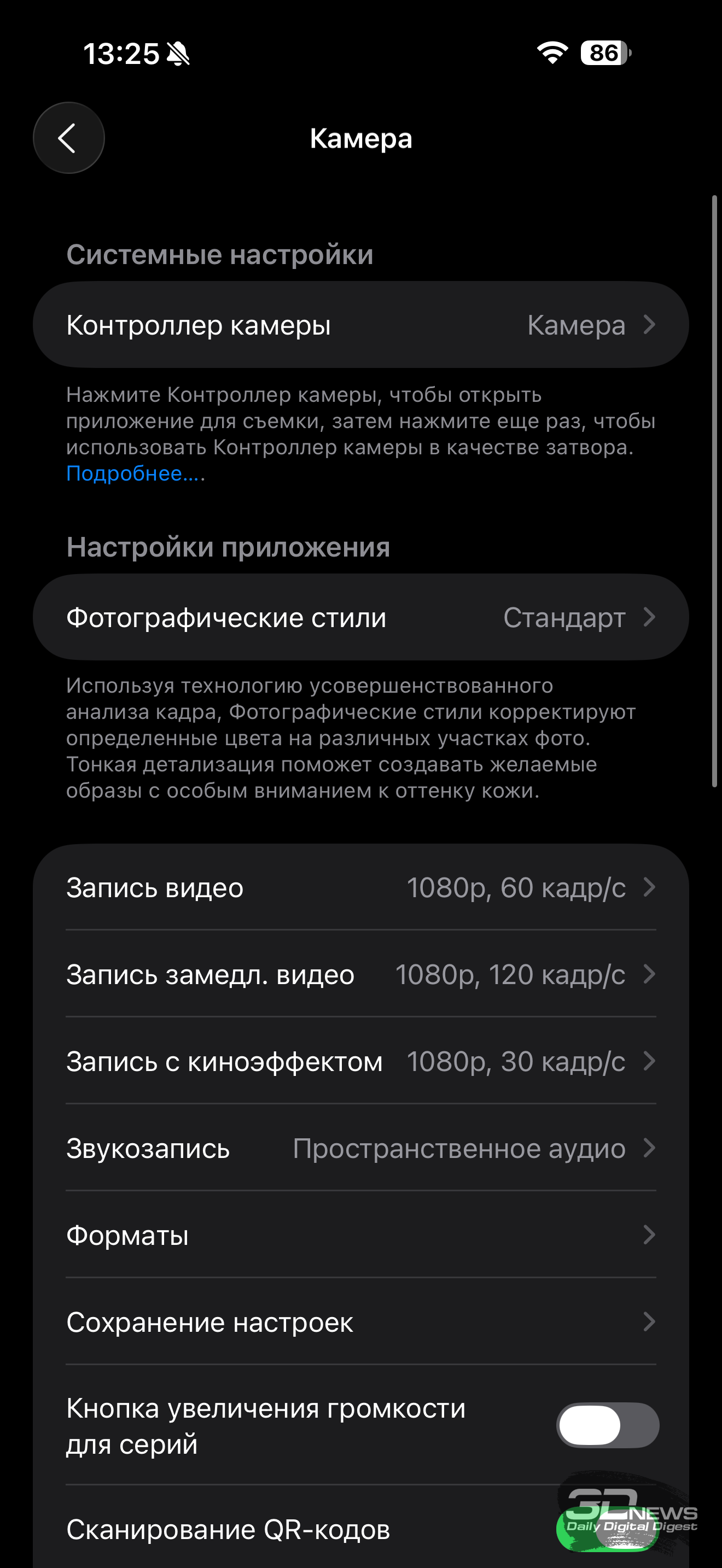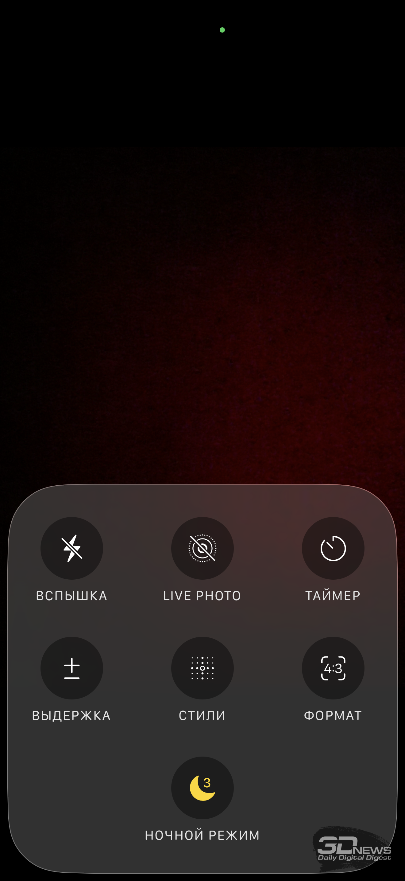 Выше я частично уже сетовал на запутанный интерфейс, с не слишком очевидной логикой, которая как всегда дополняется необходимостью идти в общие настройки для более тонких регулировок (вроде разрешения или выбора формата – HEIF, JPEG или RAW) – почему не обеспечить доступ к ним из приложения камеры за столько лет? Ладно, к чему риторические вопросы, это Apple. Общая логика и набор режимов те же, чуть поменялись значки, доступ к быстрым настройкам теперь открывается через значки сверху, а не снизу экрана. Режима с ручными настройками как не было, так и нет. Прозрачные плашки вполне нормально смотрятся.
