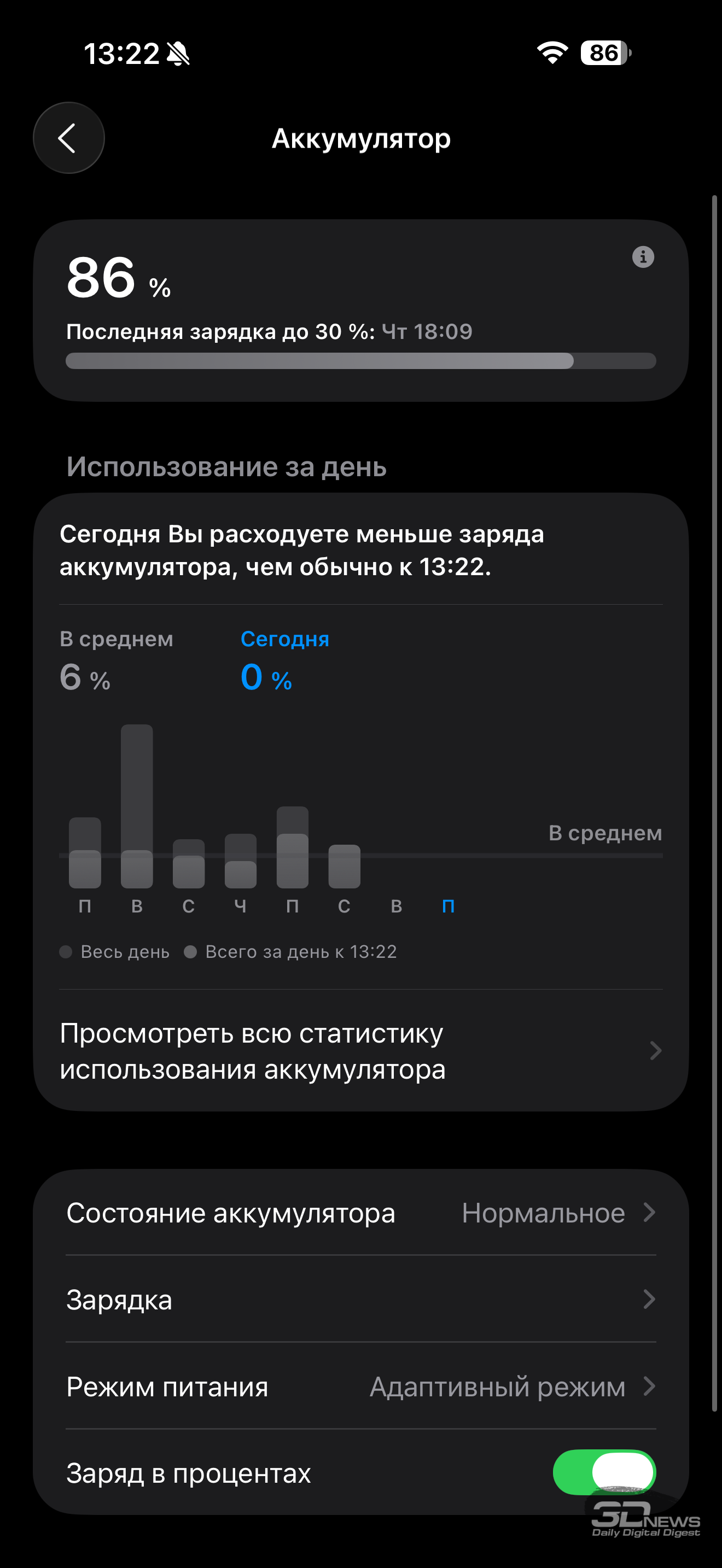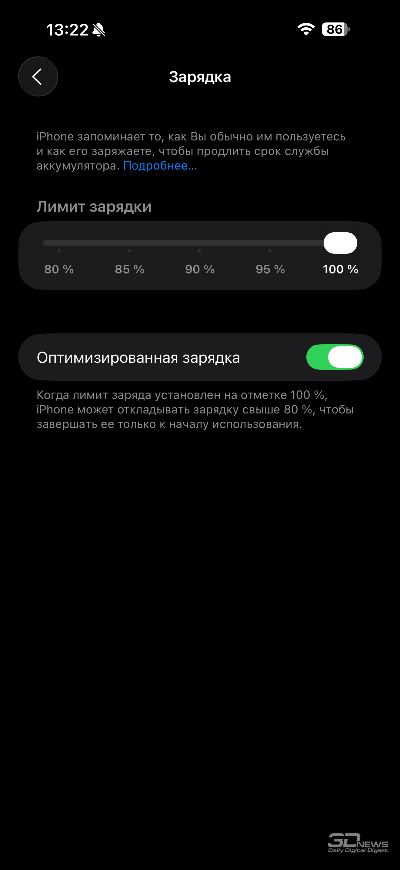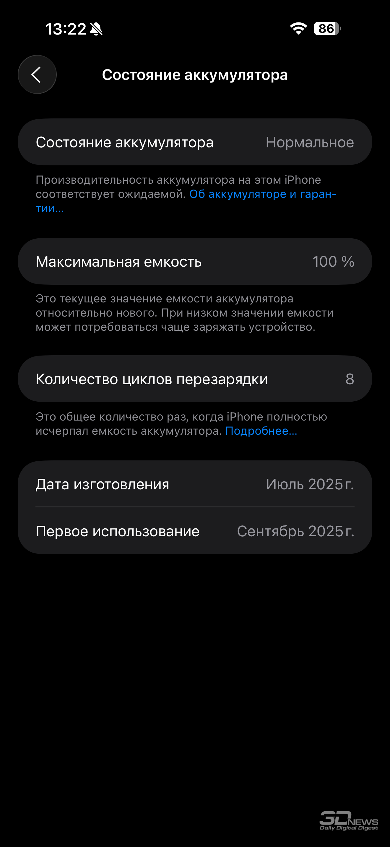 Я измерил цветопередачу дисплея с отключенной настройкой True Tone – она действительно делает картинку более приятной глазу, но инструментально замерять это «приятно» не имеет смысла. Также результаты наших измерений стоит воспринимать с поправкой на то, что наши тестовые паттерны предполагают гамму sRGB – но в последнее время смартфоны Apple научились подстраиваться и под более узкую гамму, нежели P3.