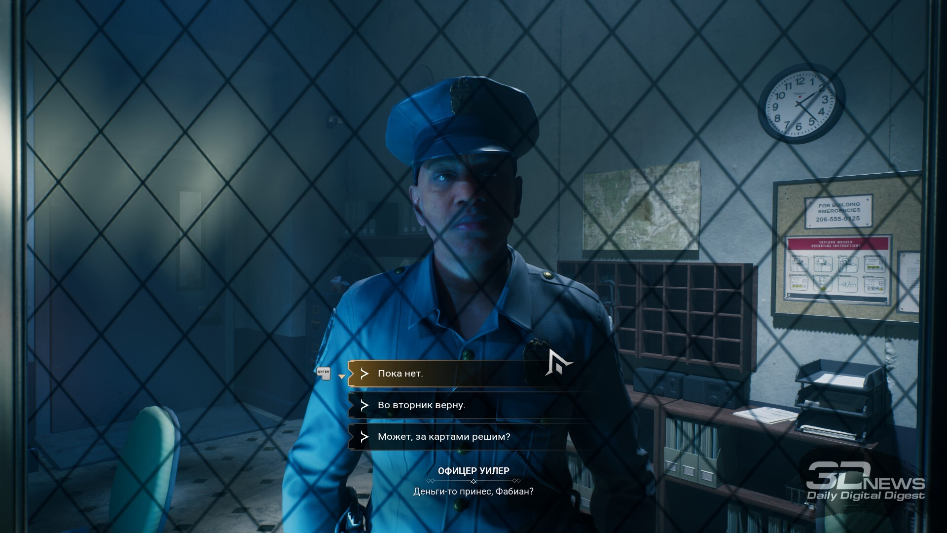 Из-за этой тяжеловесности страдает и потенциально интересный сценарный ход. Основная история развивается в двух временных линиях — в настоящем, где Фаир идёт к успеху, выполняя грязную и не очень работу для кланов и Принца Сиэтла; и в прошлом, где Фабиан пытается распутать клубок кровавых интриг. И обе линии, конечно же, имеют непосредственную связь, что, в теории, звучит многообещающе. На деле — переключения между героями обставлены топорно: вы просто идёте спать или теряете сознание по другой причине, и во сне видите воспоминания о бытности детектива. Да ещё и сами сегменты Фабиана длятся невозможно долго, а в них ничего толком не происходит. Это перегружает нарратив, расфокусирует повествование. А ещё за детектива предстоит немало побегать по городу, только вот способностей Фаир у него нет.