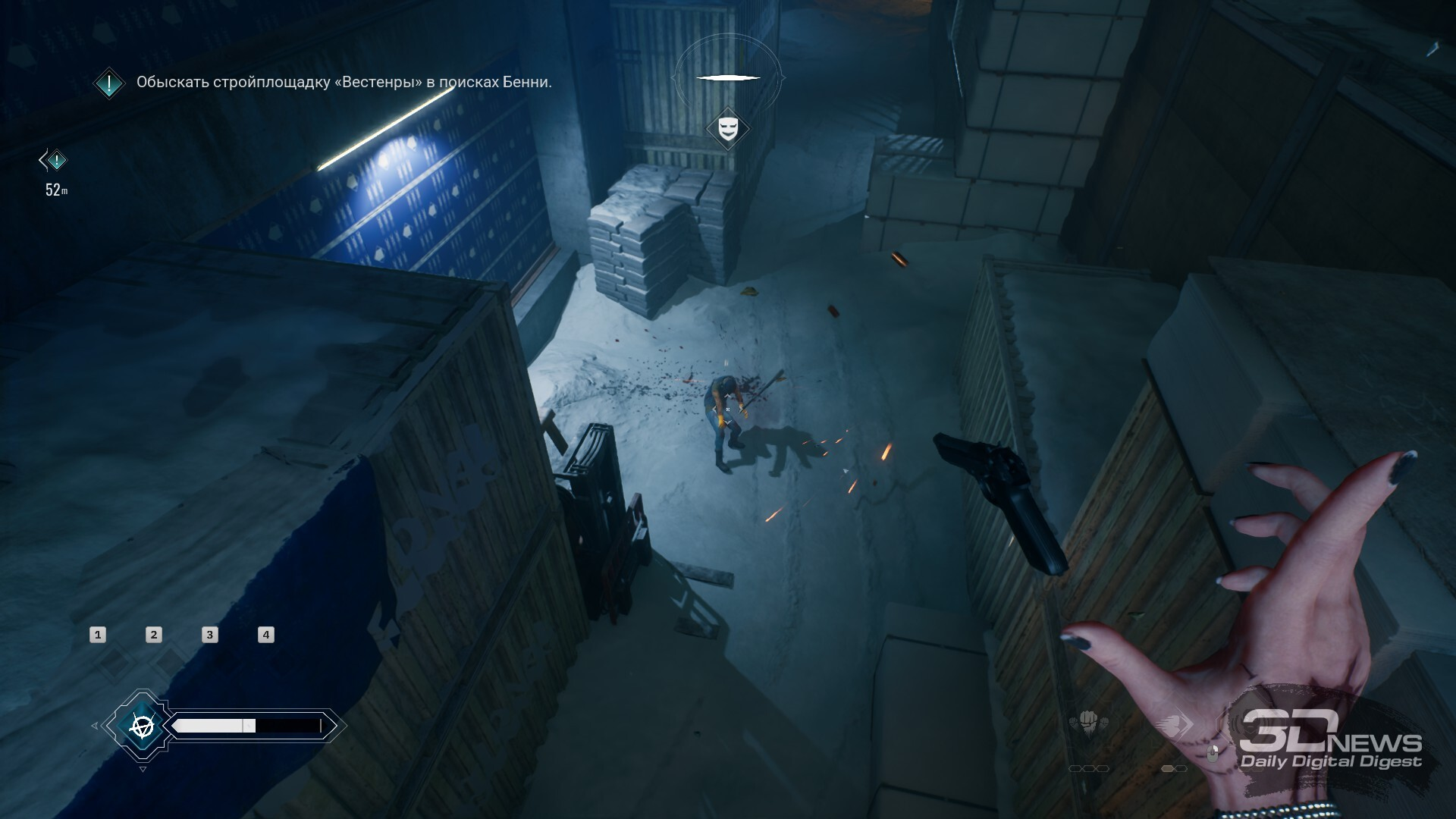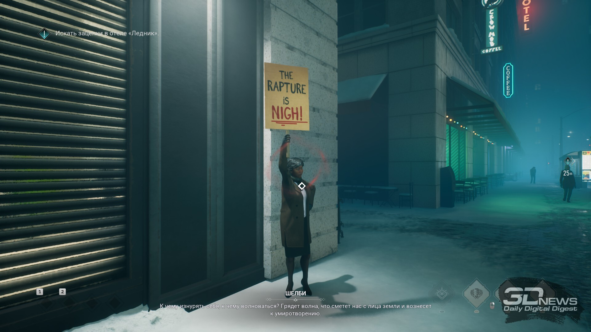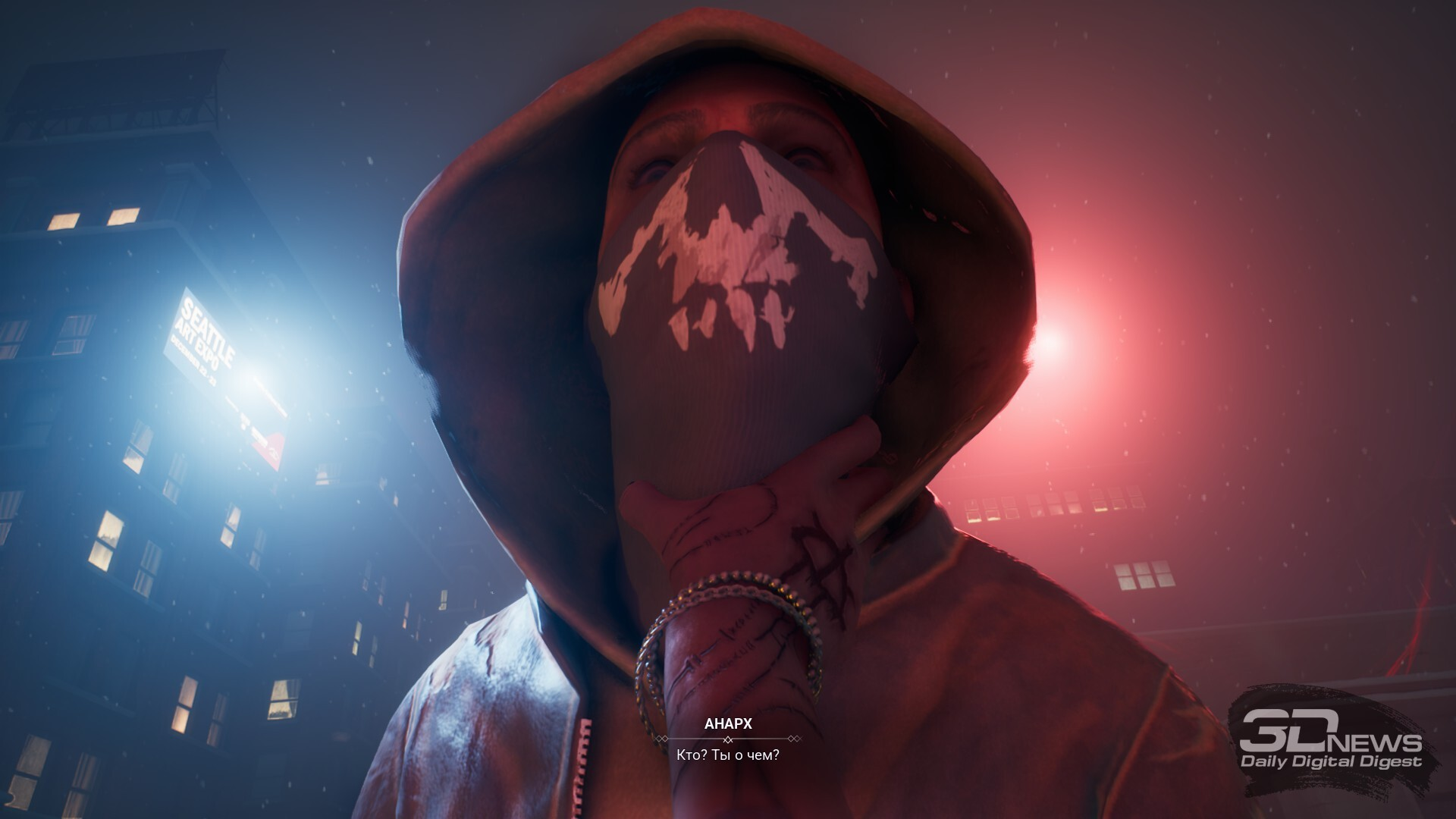 Мог бы… но город не располагает к таким развлечениям. Скажем, симуляция жизни будто бы в принципе отсутствует — одинаковые болванчики бессмысленно снуют по пустым улочкам, не создавая даже видимости быта. Да и активностями окружение не балует, разве что иногда случаются события «Резонанс крови». Они, в теории, должны добавить того самого ощущения живости мира, но делают только хуже, генерируя безумно абсурдные ситуации. Вот у гражданина возникли сложности с банкоматом: к нему можно подойти и спросить, как дела, на что последует самая «логичная» реакция — житель Сиэтла бросится на нас с кулаками… и тут же получит пулю от полицейского, который после столь вопиющего произвола просто вернёт оружие в кобуру и пойдёт по своим делам. Или, скажем, безобидный на вид парень в шапочке с помпоном попытается ограбить нас. Недюжинная смелость, учитывая, что прочие жители Сиэтла часто будут в страхе и воплях убегать от нас… вообще без причины. Кстати, о беге: если применить ускорение на улице, то вы сможете заметить, как вырастает не только ваша скорость, но и скорость вообще всего мира вокруг, включая комично тараторящую речь — довольно забавный технический «костыль». Как привязка скорости движения машины к кадровой частоте в гоночных играх, только очень плохо замаскированная.