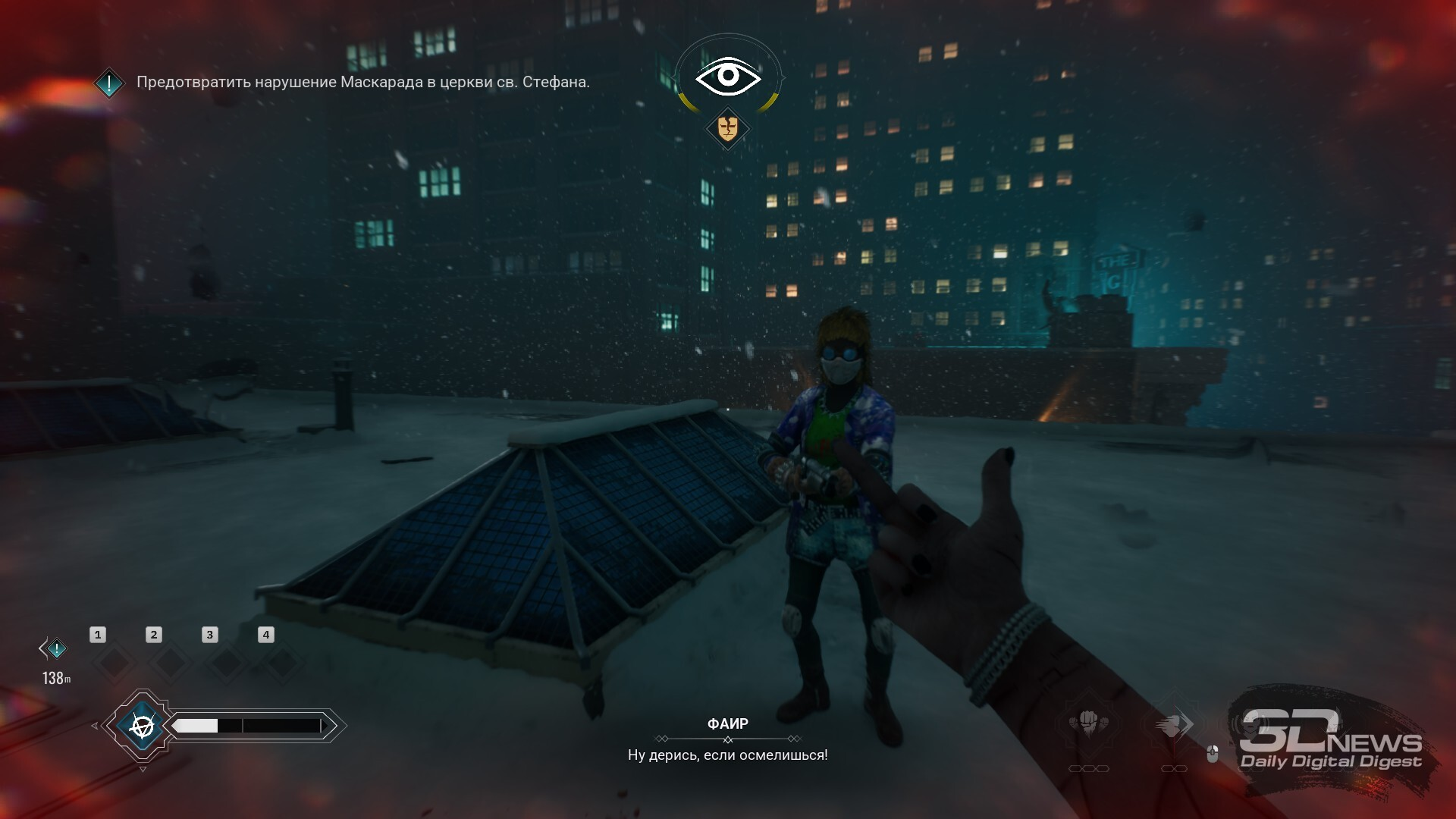 Даже любопытный вампирский фриран едва ли доведется часто задействовать, ведь дизайн мира не особенно к нему располагает — в отличие от уже упомянутой Dying Light, где архитектура и враги поощряют городской паркур, в Bloodlines 2 быстрее и проще бежать к своей цели по улице. Разве что в моментах, когда это необходимо по заданию, или вы просто хотите развлечь себя (а в этой игре — захотите), забег по крышам ночного города окажется довольно приятным опытом. А уж если попадётся какая-нибудь шпана, то ещё и подраться вдоволь получится.