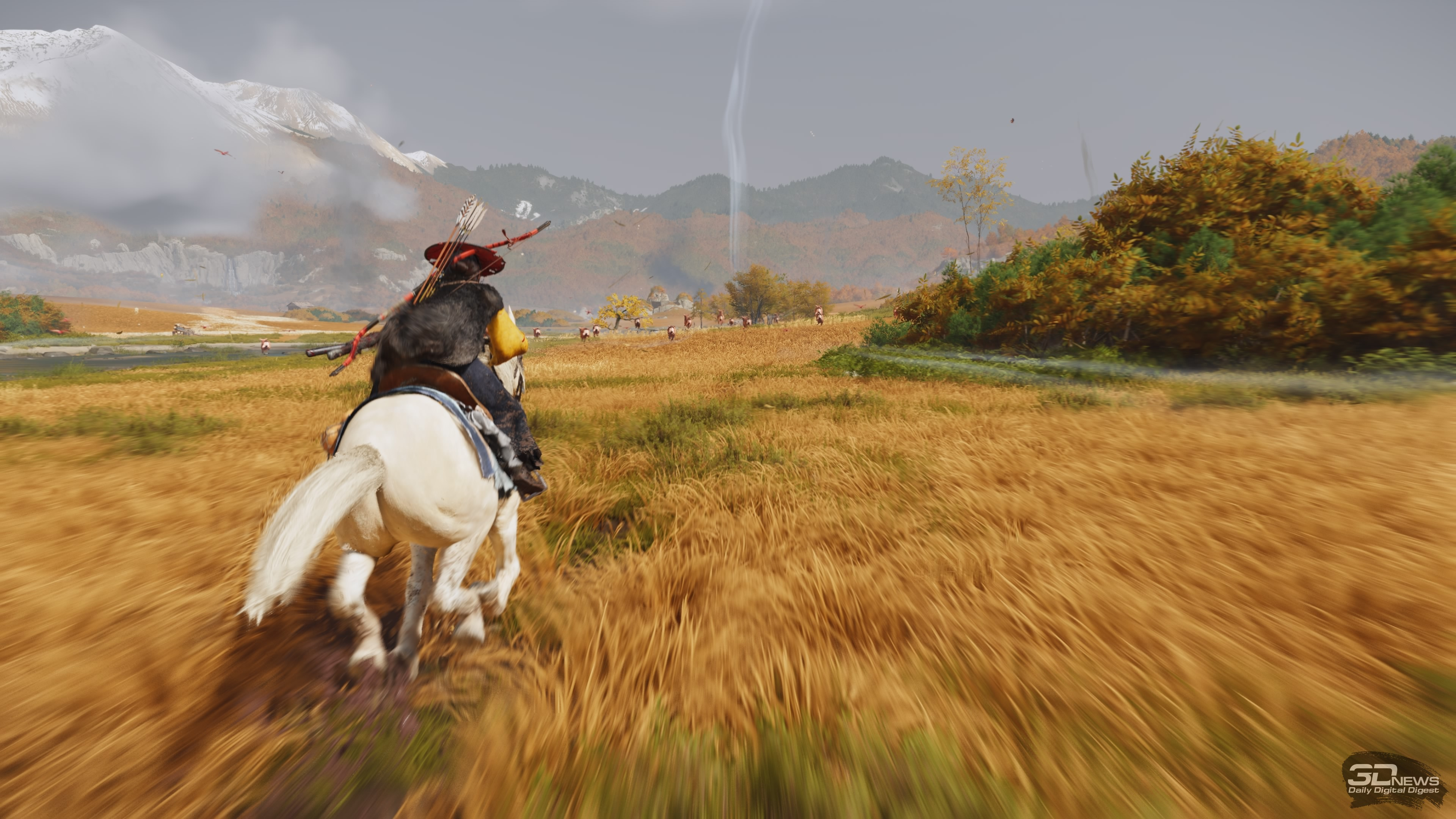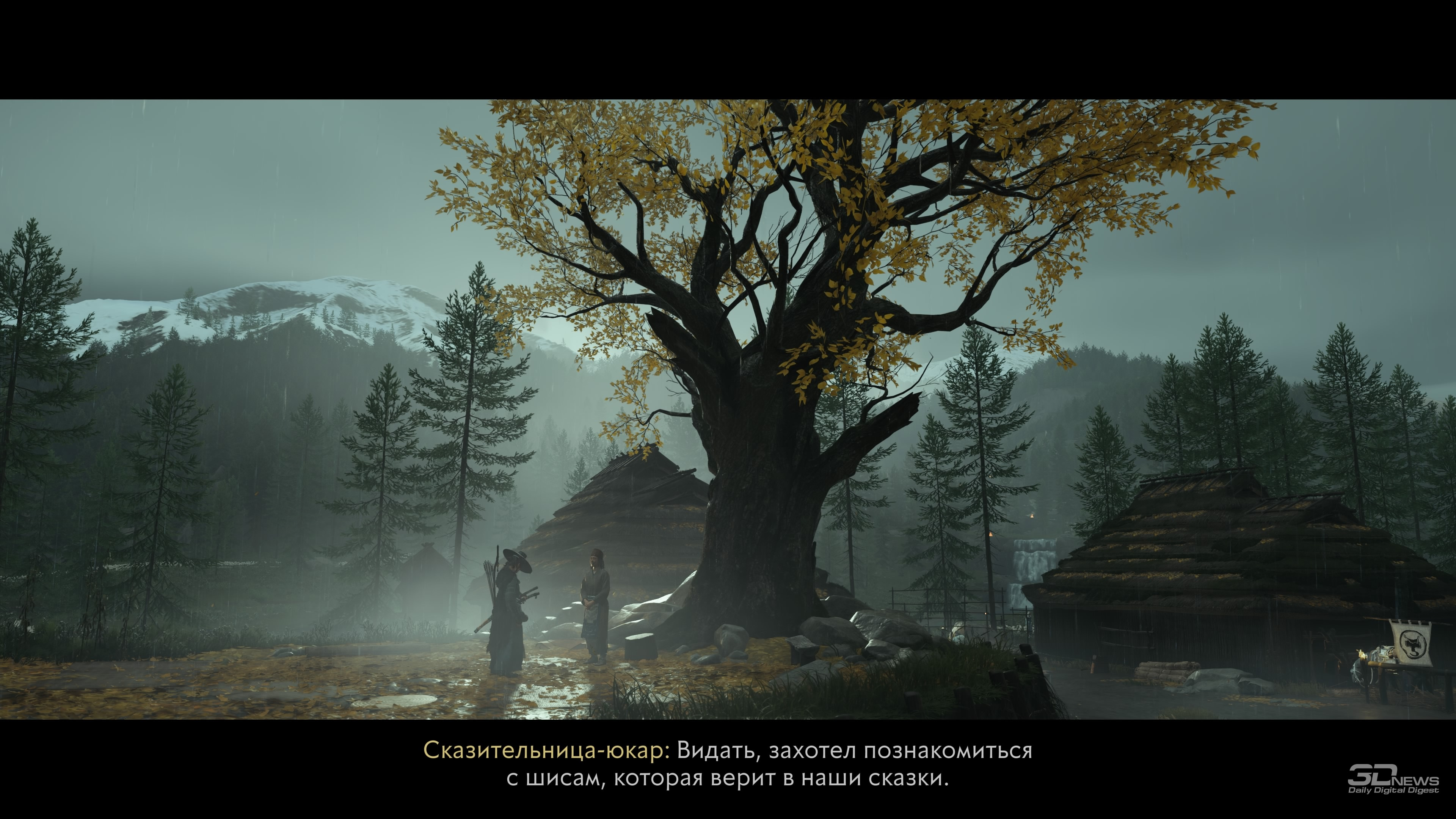 Играли на PlayStation 5 Ghost of Tsushima вышла за несколько лет до того, как Ubisoft наконец-то решилась сделать Assassin’s Creed в декорациях феодальной Японии. Тогда идея ещё казалась свежей, да и геймплейно релиз Sucker Punch напоминал «ассасинов», причём старых — с небольшим миром, сюжетной кампанией часов на двадцать и разными стилями прохождения. Аудитории экшен понравился (в том числе японцам, хотя студия американская), а потому спустя пять лет мы получили новую часть серии. Ghost of Yotei, судя по названию, не сиквел, но развивает идеи предшественницы и рассказывает новую историю с новым протагонистом. ⇡#Кодекс не нуженВ первой игре мы управляли Дзином, самураем, который так хотел защитить родной остров, что решил игнорировать самурайский кодекс. Вместо встречи с противниками лицом к лицу, как подобает настоящему воину, он часто использовал «нечестные» приёмы вроде отравления воды во вражеских лагерях и скрытных убийств, что не очень нравилось его дяде. ![]() Со временем связь Ацу с волчицей крепнет — зверь может и спасти героиню от смерти, и просто напасть на врагов В Ghost of Yotei, действие которой происходит спустя три сотни лет после «Призрака Цусимы», главной героине Ацу не приходится думать о каких-то там кодексах — её история совсем иная. В детстве её родителей убили лидеры клана Сайто, а саму её пригвоздили мечом к дереву, которое потом подожгли. Девочке удалось спастись, после чего шестнадцать лет она провела на юге региона Эдзо (нынешний Хоккайдо), выполняя заказы и готовя план мести. Её задача — отыскать «Шестерых изгоев», тех самых лидеров клана, которые разрушили её семью. Первого из них — Змея — мы побеждаем в самом начале, а ради остальных придётся посетить разные уголки карты в поисках зацепок. Почему-то в последнее время западные разработчики, которые берутся рассказывать истории в азиатском антураже, не могут придумать что-то оригинальное и просто делают протагонистов мстительными убийцами. Сюжет Ghost of Yotei — точно такой же, как у Sifu (только там Китай, а не Япония), и мало чем отличается от истории Наоэ из Assassin’s Creed Shadows. Но если Sifu — игра короткая, а у Наоэ есть компаньон Ясукэ со своими проблемами, то в новом «Призраке» сценаристам явно было сложно растянуть историю, которая умещается в паре абзацев, на два десятка часов. Поэтому часть миссий кажется лишней из-за того, что сюжет топчется на месте, второстепенные персонажи по большей части не запоминаются, а из-за отсутствия внутренних дилемм Ацу оказывается ещё менее интересным протагонистом, чем Дзин. Зато происходящее за пределами «сюжетки» увлекает, и в этом заслуга дизайнеров открытого мира. По ощущениям, карта меньше, чем в прошлой игре, но она под завязку набита активностями и постоянно направляет игрока в нужную сторону ненавязчивыми подсказками. То птичка пролетит, намекая, что за ней можно проследовать, то на скале увидишь белые ступеньки, то жёлтые маленькие статуи расставлены в несколько рядов, то дым от разведённого костра виднеется или замечаешь вдалеке палатку — на каждом шагу на что-то натыкаешься. И находишь всё это, не обращаясь к карте, а просто по пути к следующей сюжетной цели. Разработчикам удалось тесно переплести обязательные и второстепенные развлечения, благодаря чему всё, чем можешь заниматься в игре, кажется важным для повествования. Например, на Ацу объявляют охоту, п