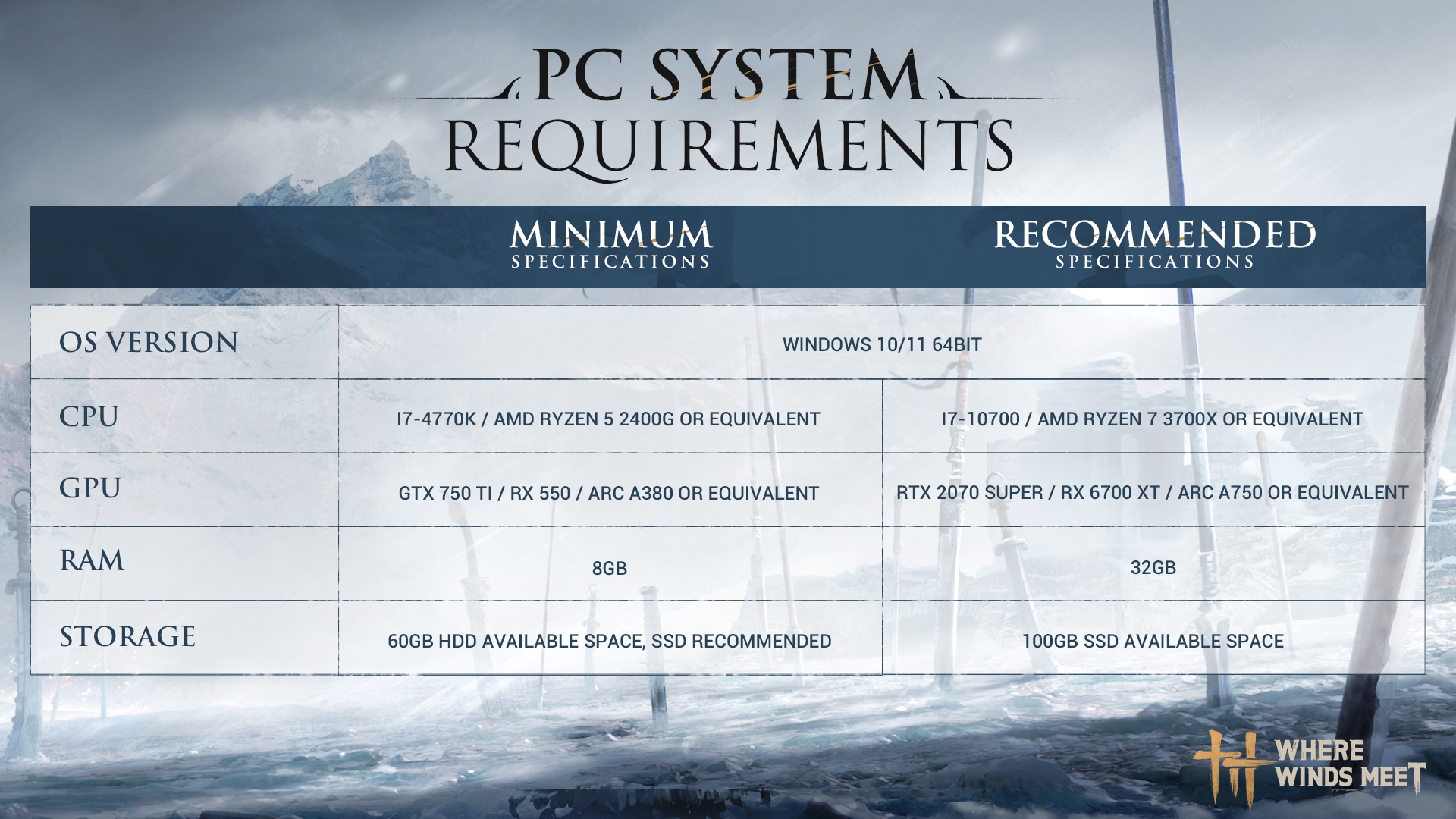 Как выяснилось, ближе к релизу Where Winds Meet стала менее требовательна (по крайней мере, в вопросе минимальной конфигурации): для запуска игры на ПК хватит i7-4770K, GTX 750 Ti, 8 Гбайт ОЗУ и HDD.